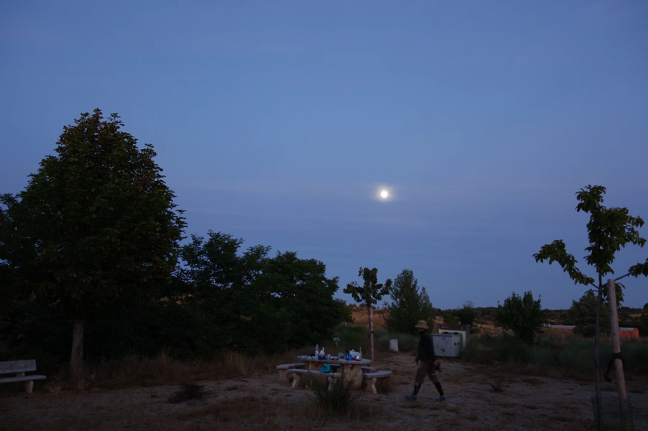 이후 함께 걸으며 슈퍼문 이야기며 그동안 만났던 길동무들 이야기 등을 나누던 중 야영 이야기가 나왔다. 슈퍼문이 뜨는 내일 폰세바돈의 철십자가(Cruz de Ferro)에서 비박을 할 계획이었고 이후로도 유성우가 내린다는 며칠 동안 비박을 하거나 밤순례를 할 생각이라고 말했다. 준이는 이미 야영을 하며 길을 걸었단다.