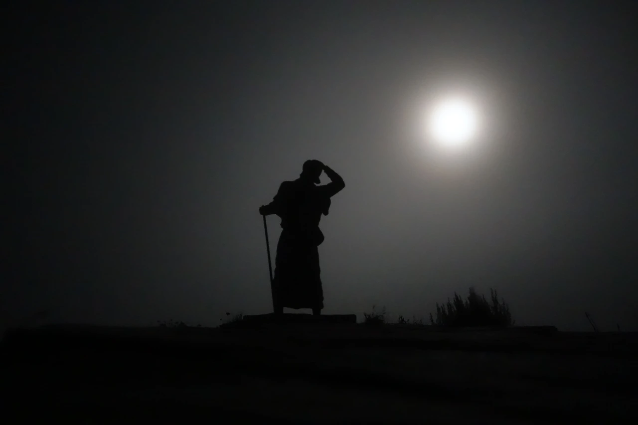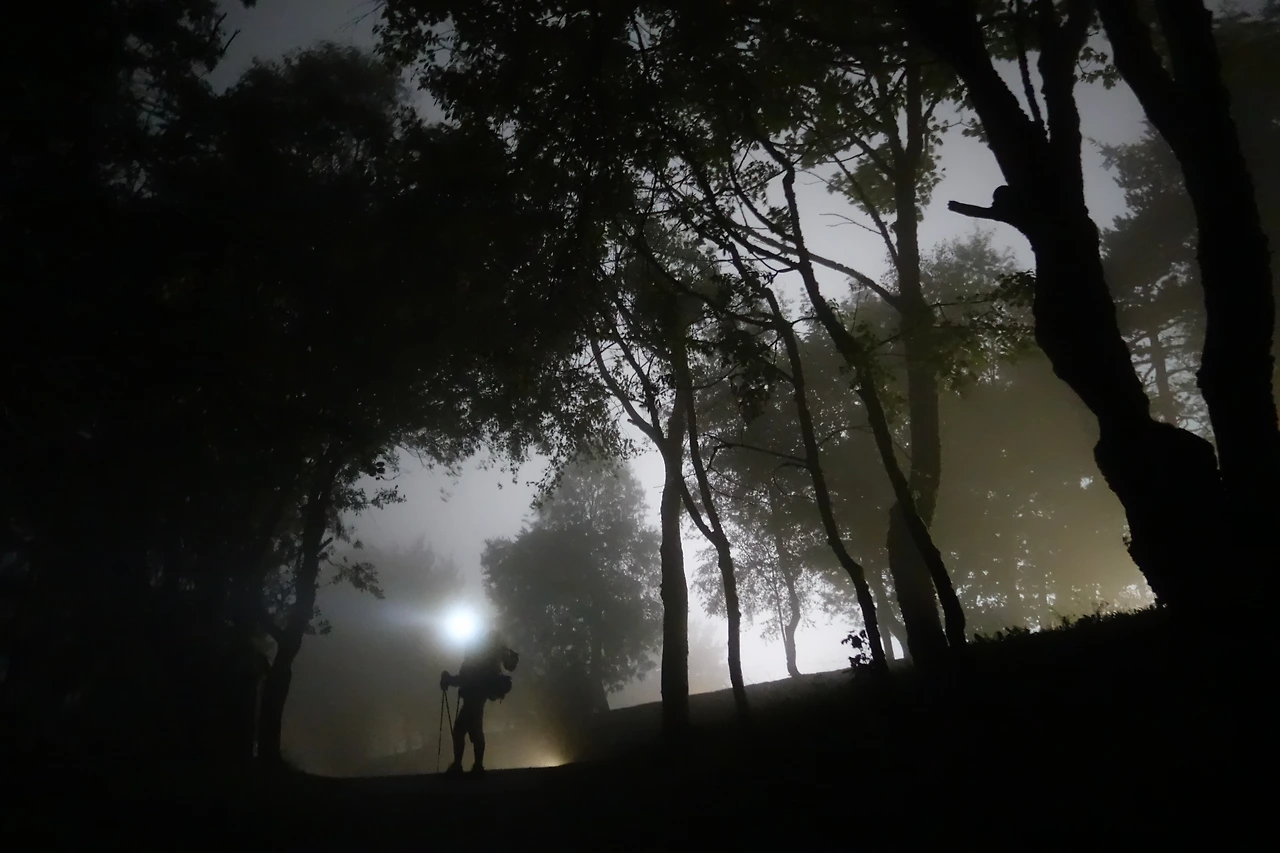 축축해진 밤 공기 속을 걸어 리냐레스(Liñares)라는 작은 마을을 지나는데 도로 옆에 안개 속에서 달을 향해 서있는 시커먼 사람 형체가 나타났다. 산로케 고개(Alto do San Roque 1,270m)의 순례자상이다. 고산지대 답게 비바람이 거세다 보니 순례자상 역시 무척 힘들게 걸음을 떼는 모습이다.