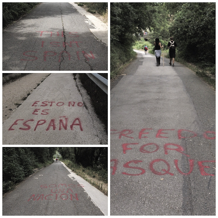 나바라주의 주도인 팜플로나에 다가설 수록 길 위에는 구호가 자주 보인다. 과거 나바라 왕국의 수도였던 도시 답게 자신들은 스페인이 아니라고 주장한다.