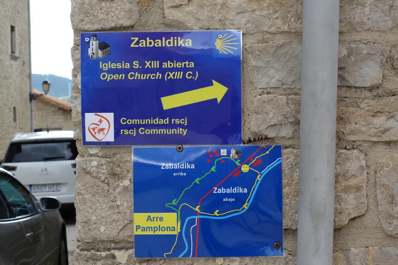 싸발디카(Zabaldika)라는 작은 마을에서는 아무런 예고도 없이 불친절하게도 갈림길이 불쑥 나타난다. 대부분의 순례자들이 왼쪽의 내리막길을 선택하게 되는데 여기서 오른쪽 도로 건너편의 오르막길을 따르면 조금은 특별한 경험을 하게 된다.