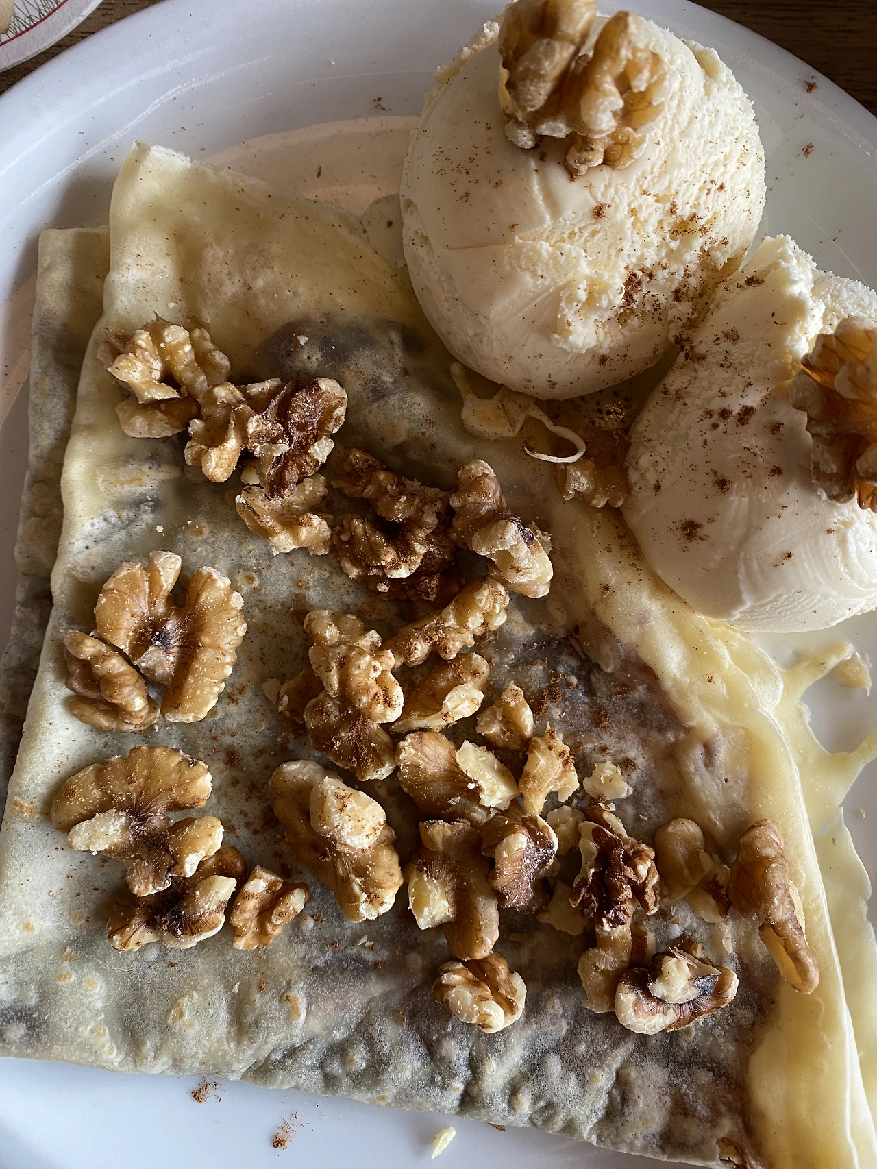 독일에는 길거리 음식이 별로 없지만 가끔 푸드트럭에서 크레페나 감자튀김 같은걸 팔아요. 저는 제일 기본인 설탕+계피맛을 되게 좋아하는데 누텔라도 인기가 많은 것 같아요. 가끔 집 마당에서 푸드트럭을 가져다 가족 다 같이 팔기도 해요.