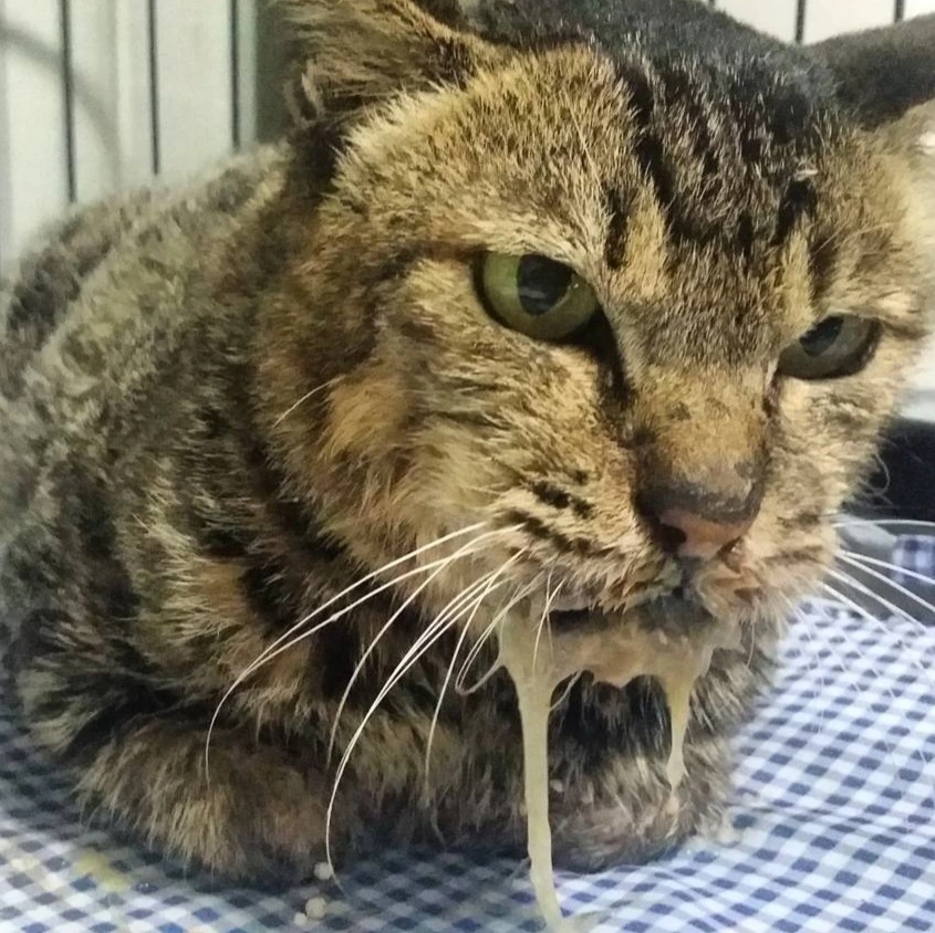 테라의 구강 상태를 보신 선생님께서는 테라가 구내염과 치주염을 갖고 있고, 이가 몇 개 없는 것으로 보아-이전에 인위적인 발치 경험이 없다는 가정하에(길고양이이므로) 치아 흡수성 병변 또한 의심된다고 하셨다. 또한 잇몸이 붓고 충혈되어 밥을 먹을 때마다 굉장히 고통스러울 거라고 했다. 테라 정도면 밥을 못 먹는 경우가 대다수이며, 먹고 싶어도 이가 너무 아파 굶게 되고 결국 사망에 이르는 아이들이 많다는 말도 덧붙였다. (구내염은 길고양이들의 마지막 관문이라는 말이 있을 정도로 아주 지독한 병이라고 한다.)