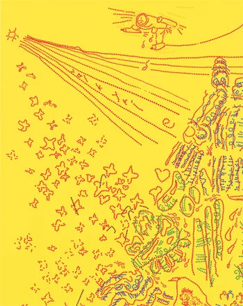 문자 산수화 이후의 그의 작품들에는 익숙한 먹글씨 대신 점들이 등장한다. 동그란 점들은 서로 이어져 수수께끼 같은 형상들이나 글자를 이루고 있다. 자세히 보면 우리가 잘 알고 있는 상투적 이미지들이 쉽게 눈에 띄기도 하고 안보이다가 ‘헤헤 놀랐지’ 하는 느낌으로 불쑥 튀어나오기도 한다.
