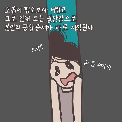 정답! 숨 쉬기 어렵다