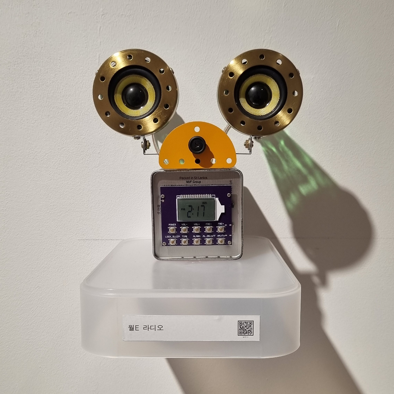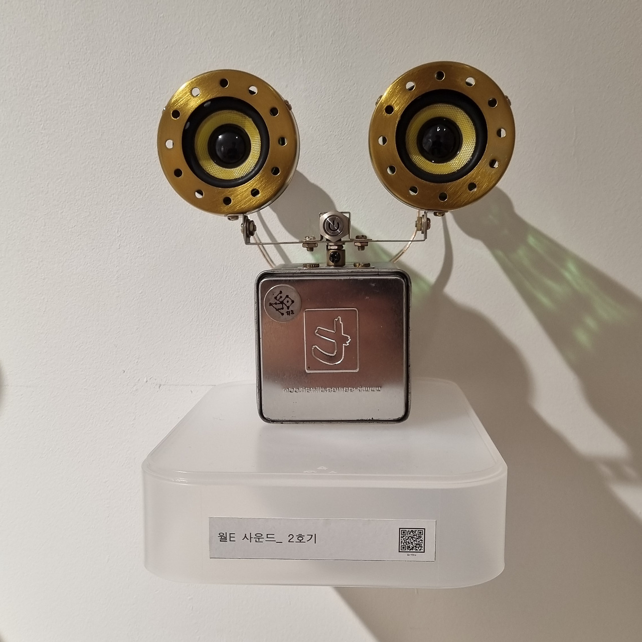 월E 사운드는 애니메이션 영화의 주인공인 쓰레기 청소 로봇 월E에서 모티브를 얻어 만든 작품으로, 외관은 차(tea)를 담았던 스틸캔 용기 몸통에, 탄산수 유리병 용기에 스피커와 조명을 설치한 두 개의 눈, 그리고 LED 조명으로 만든 코로 구성되며, 몸통 안에는 블루투스 오디오와 충전 모듈이 탑재되어 있다.