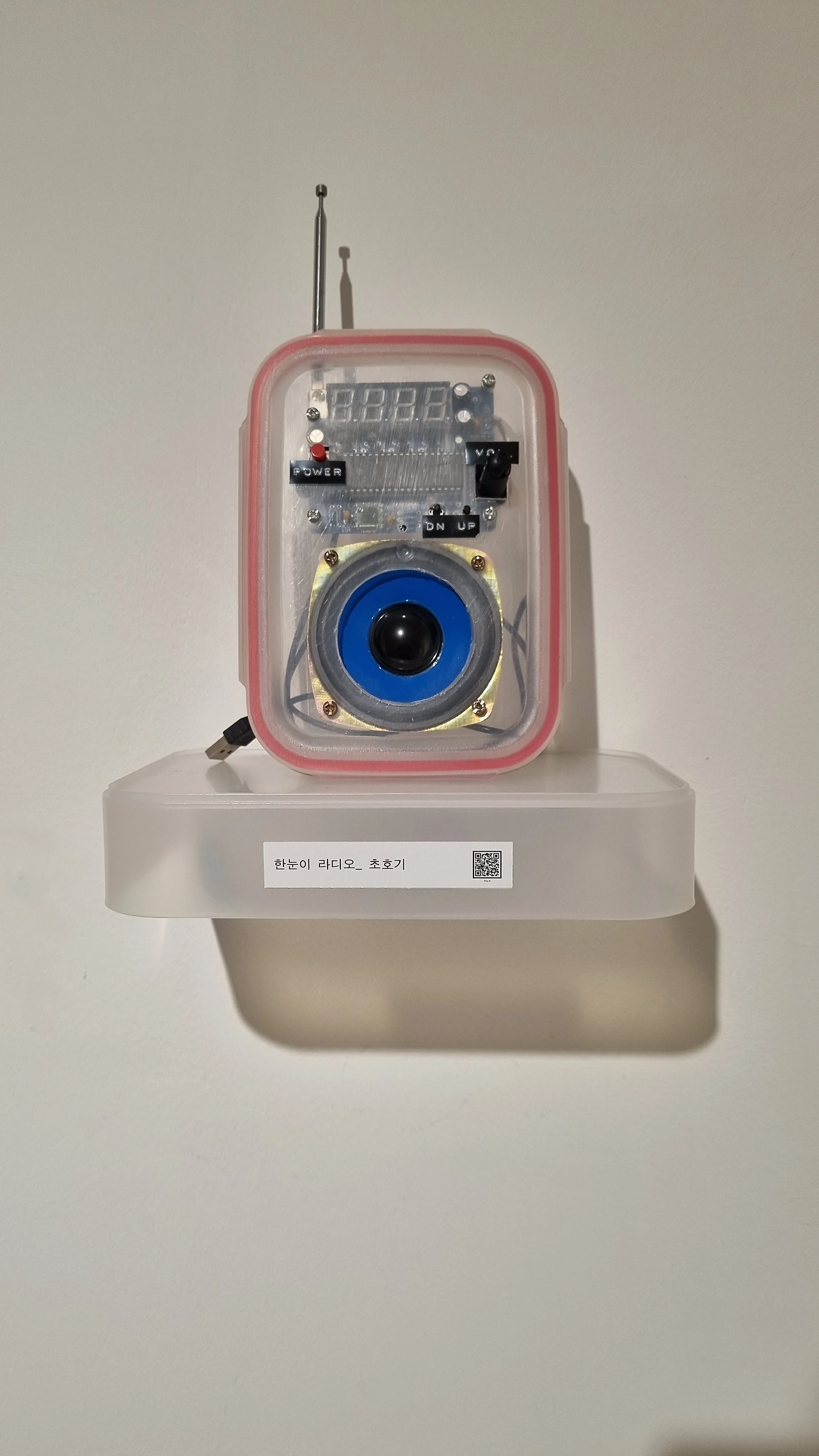 라디오 한눈이는 애니메이션 영화 미니언즈에 등장하는 외눈박이 캐릭터에서 모티브를 얻어 만든 작품으로, 외관은 플라스틱 밀폐 용기를 새활용한 몸통에, 스피커의 기능을 하는 한 개의 눈으로 구성되며, 몸통 안에는 FM 수신 및 블루투스 모듈이 탑재되어 있다.