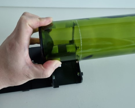 1. 준비한 와인병에 유리병 커팅기를 이용하여 다이아몬드 날로 적당한 위치에 금을 그어준다.