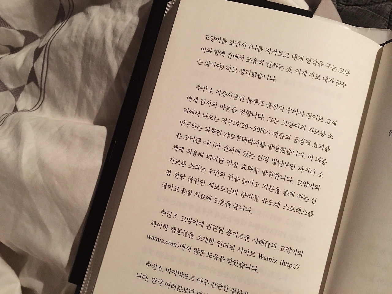 금요일 퇴근 후 좋아하는 김치 삼겹살 가게를 찾아가 회사에서 있었던 일을 안주삼아 밤늦게까지 남편과 못다 한 이야기를 나누고, 반려묘 짱구, 나르와 한 베개에 누워 고요히 늦잠을 자고, 주말엔 동네에 새로 생긴 카페에서 새로 사둔 책을 읽는 내 모습을 상상하면서.