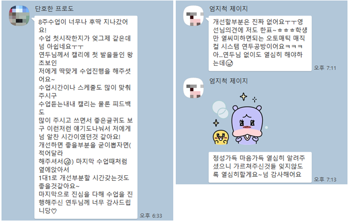 저희집이랑 가까우신 분들은 많은 참여부탁드리며 이 글을 마칩니다. 참고로 수강생분들의 후기도 캡쳐 첨부합니다^^