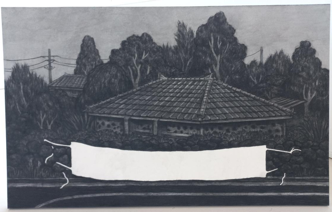 아름다운 곶자왈을 가진 드높은 위상의 국제자유도시의 이면에서, 역사 속에서 반복되는 제주도에 대한 중앙정부의 폭력적 태도로 인해 현지인의 현생은 투쟁으로 점철됩니다. 시커면 배경에 하얀 현수막만 도드라집니다. 아무것도 적혀있지 않은 현수막에, 수천 마디 말들이 그득합니다. 너무 많은 말들이 담겨있어, 오히려 아무 말도 보이지 않습니다.
