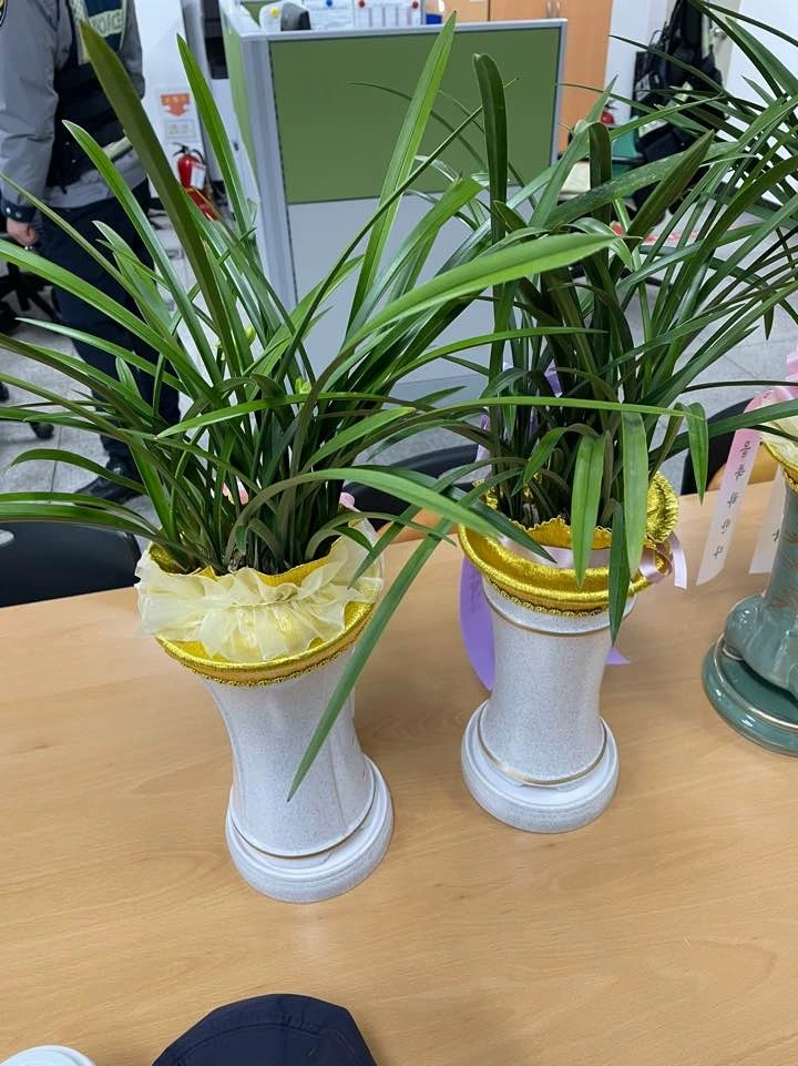 그 뒤로는 SNS를 통해서 진짜 경찰이 되어 열심히 교육을 받는 모습을 지켜보았다. 그리고 파출소에 배치받고 온 카톡에 웃음이 풉-하고 튀어나왔다. 승진을 축하한다는 리본을 정갈하게 매단 동양란 4개가 조르륵 있는 사진을 보내고, 얘네는 어떻게 관리해야 하냐는 질문이 온 것이다.
