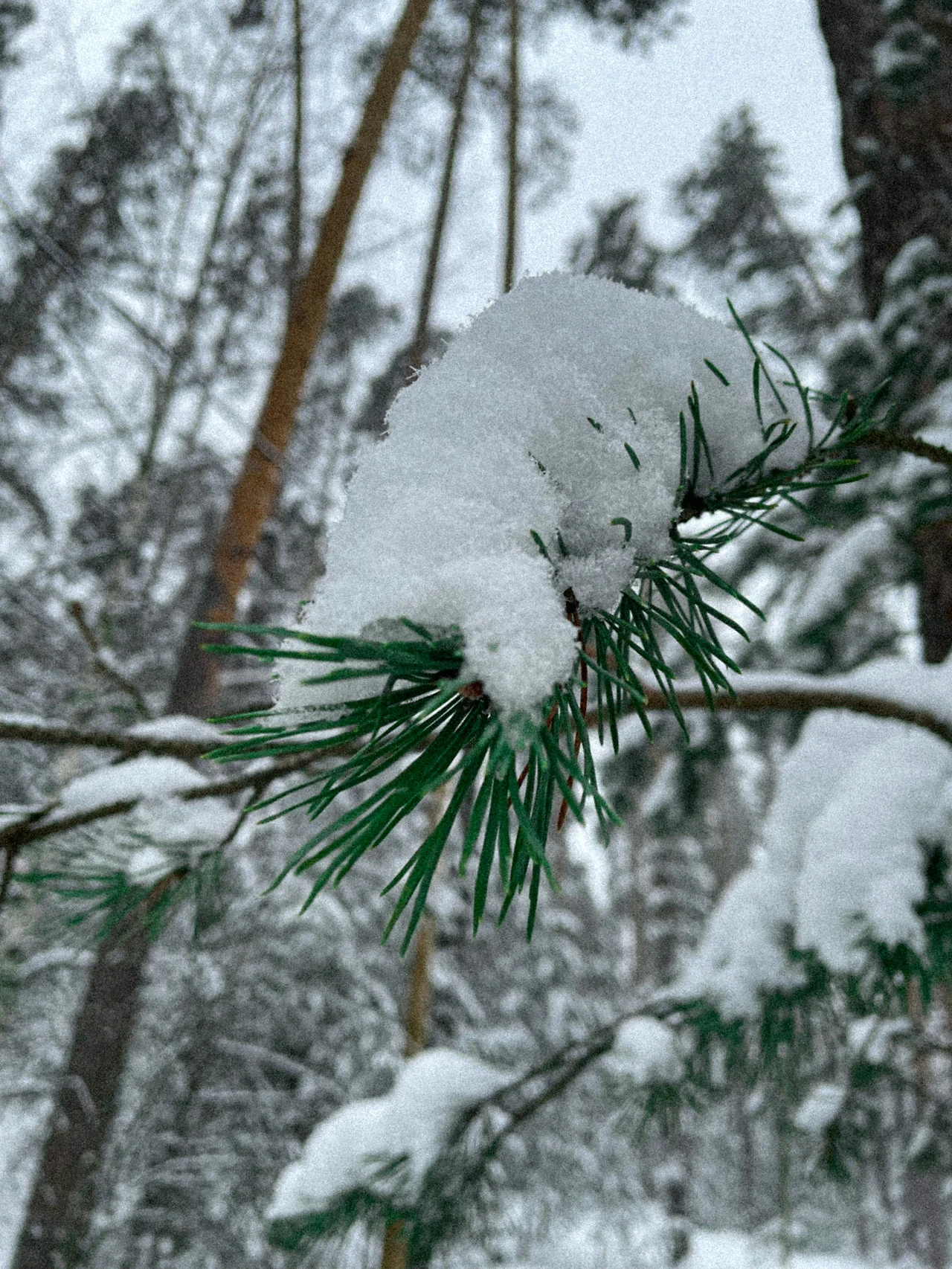 그때 푸른 소나무들이 너무 추워 보였어요.
