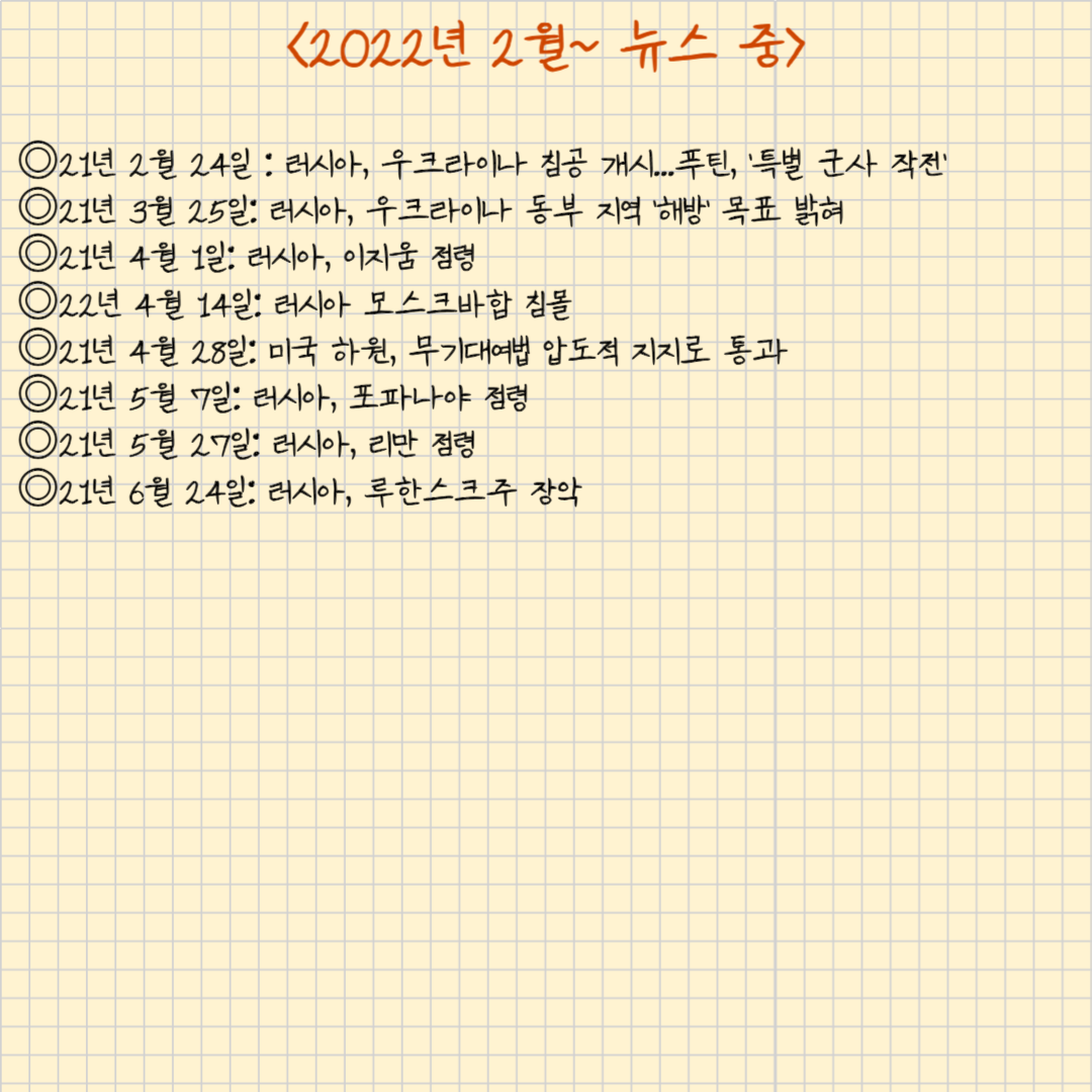 포탄들이 빛과 휘파람 소리를 내며 우크라이나 도시에 떨어졌다. 사이렌이 울렸다. 우크라이나 대통령의 목을 따러 러시아 공수부대와 특수부대가 분주하게 움직였고, 벨라루스가 터준 북쪽 길에서, 러시아 주민들이 많이 살고 있는 동쪽에서 ‘Z’를 세긴 러시아 군대가 밀려 들어왔다. 같은 날 2월 24일, 러시아 방송에서 푸틴의 대국민 담화가 시작됐다. 그는 세 가지 목적을 말했다. ‘돈바스 해방’, ‘나치 제거’, ‘탈군사화’. 그리고 이렇게 말을 마쳤다. “국가의 명운이 달린 일이다”. ‘특수 작전’은 그렇게 시작됐다.