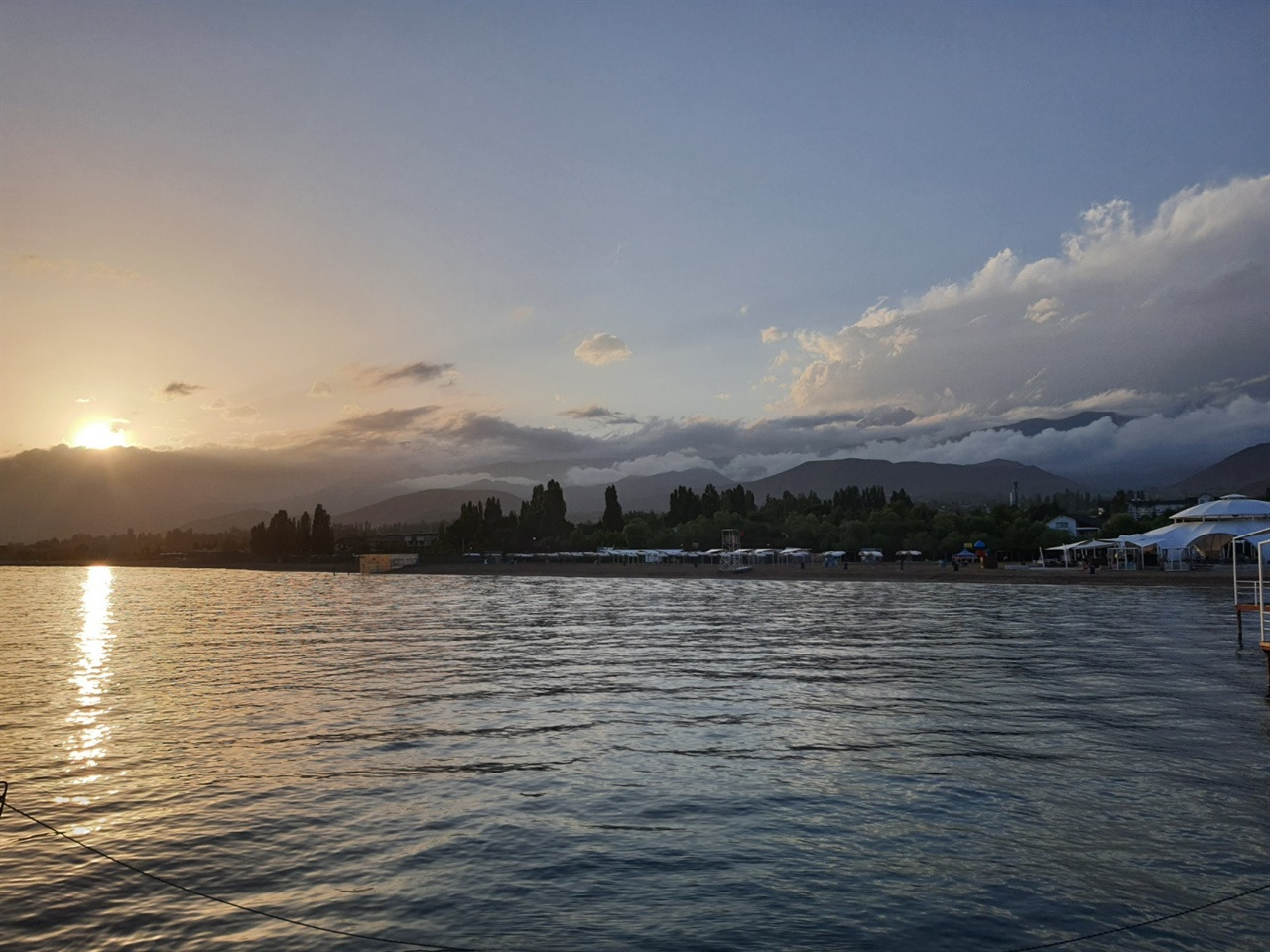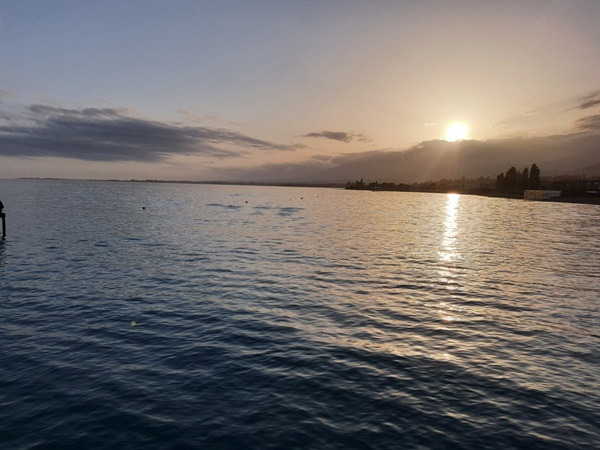 ▲ 이식쿨호수 석양 이식쿨 호수에 일렁이는 윤슬이 여행자를 사로잡았다.