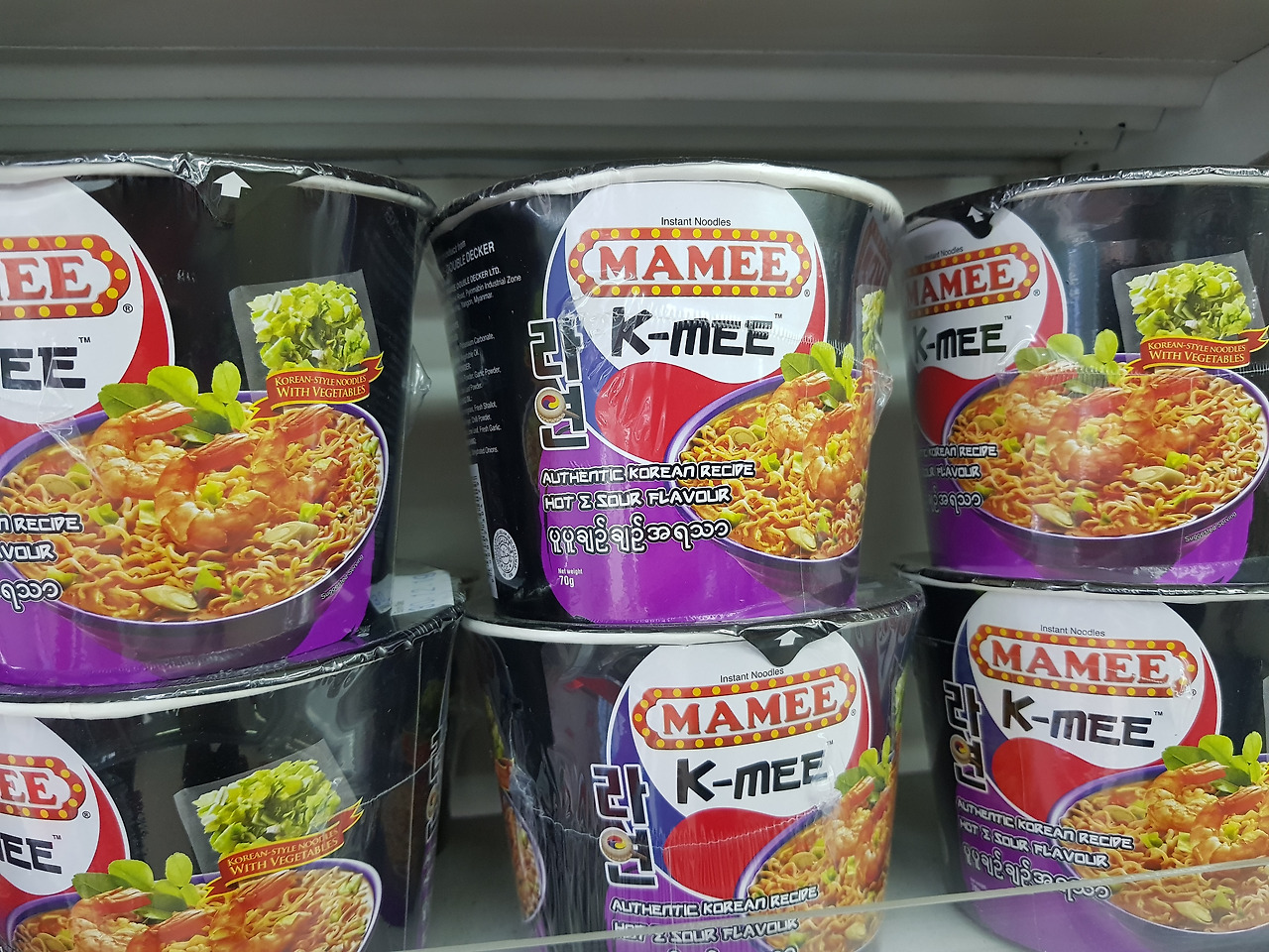 우리나라로 치면 이마트나 홈플러스쯤 되는 양곤 시내 대형마트에 방문했을 때의 일이다. 그곳 마트 진열대 중앙에 한글이 박혀 있는 짝퉁 라면을 발견한 일이다(맨 위 사진). 분명 컵라면인데 상표에는 영어로 ‘K-MEE’와 바로 옆에 한글로 라면이 아니라 ‘라연’이라 쓰여 있었다. 거기에 ‘연’ 자의 ‘ㅇ’에는 태극문양이 디자인되어 있었다. 딱 봐도 한국 라면 짝퉁이라는 걸 알 수 있었다. '앗! 저것이 한류의 실체다' 친구와 나는 재미있어서 한참을 웃었다.