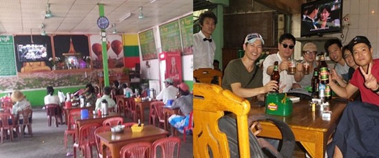 ▲ 미얀마 한류:오전인데도 식당에 앉아 한국 드라마에 심취해 있는 사람들이 꽤 있었다. 술집 벽면 TV에는 한국 드라마가 방영되고 있었다.
