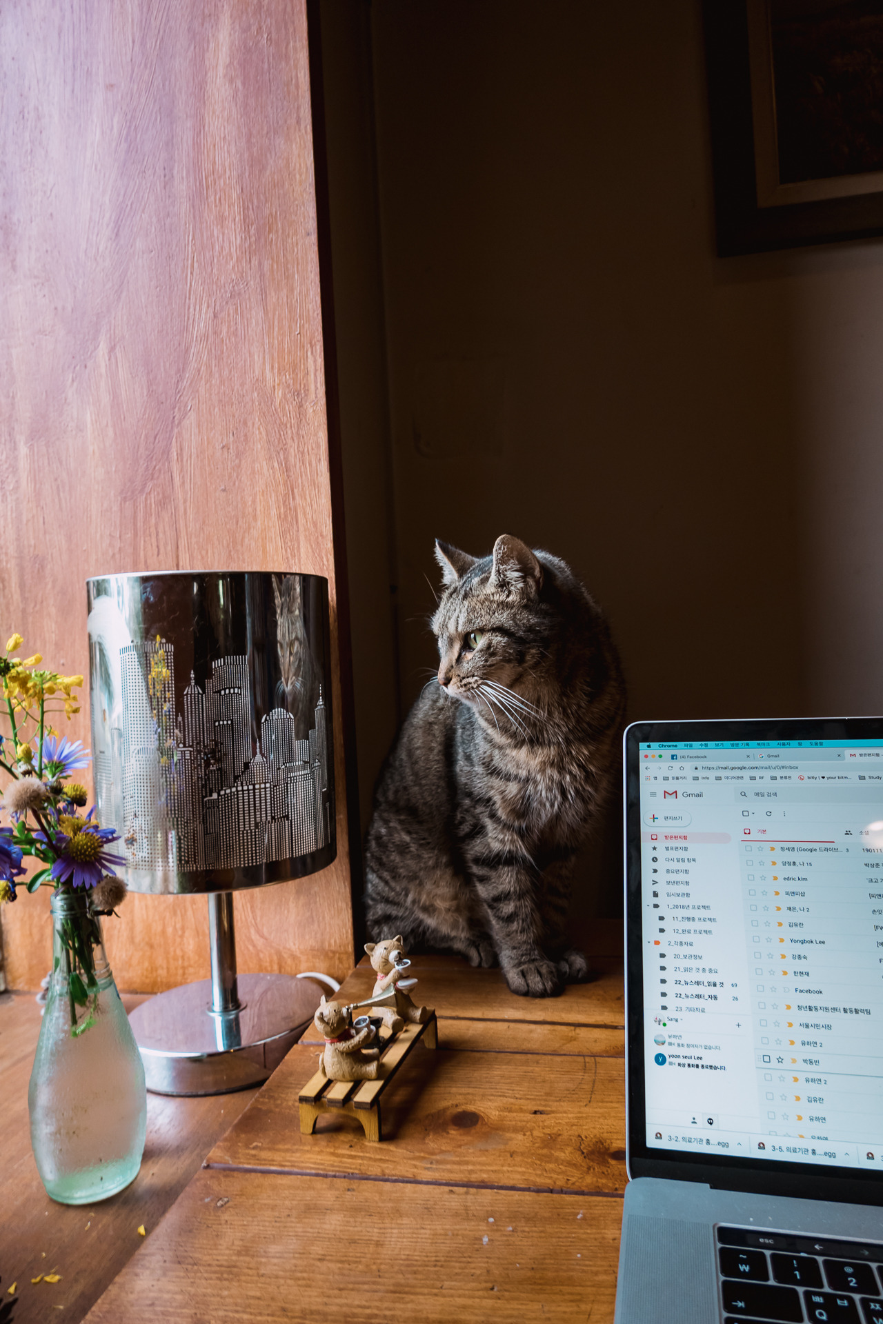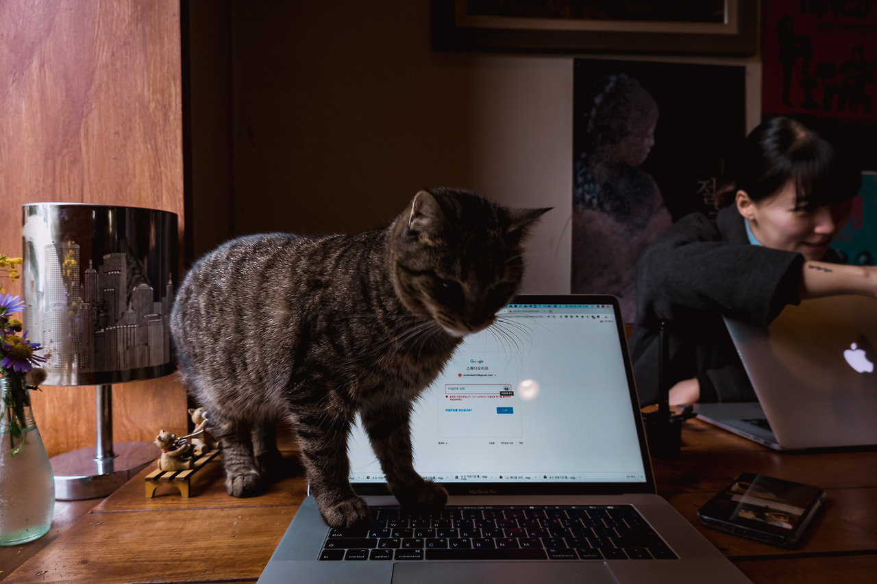 결론적으로, 일하기 좋은 카페랑은 거리가 먼 곳. 냥이들이 많아서 정신 팔기 딱 좋다. 낯을 안 가리는 녀석들이라 이렇게 노트북을 점령하기도 한다. 그리고 넓지 않은 공간에서 냥이들이 돌아다니다 보니 고양이 냄새도 꽤 강한 편. 이런 시도는 이것으로 충분하다고 생각했다.