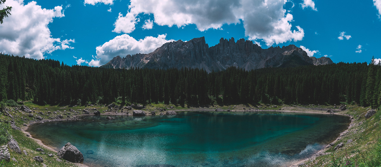 처음 돌로미티를 가기로 결정할 때 마음을 움직인 건 카레짜 호수의 풍경을 담은 한 장의 사진이었다. 한 장의 사진 안에 새벽녘의 푸르스름한 호수와 주위를 둘러싼 빼곡한 나무, 그 뒤로 보이는 산봉우리들이 함께 담겨있었다. 돌로미티의 일정이 끝나갈 무렵의 오후 카레짜 호수에 도착했다. 사진 속 호수에서는 왠지 모를 처연함이 느껴졌지만, 한낮의 태양 아래 호수는 찬란히 빛나고 있었다. 느긋하게 호수 주변을 둘러보는데 걸리는 시간은 30분 내외. 그동안 지나쳤던 호수에 비하면 매우 작고 소박한 크기의 호수였다.