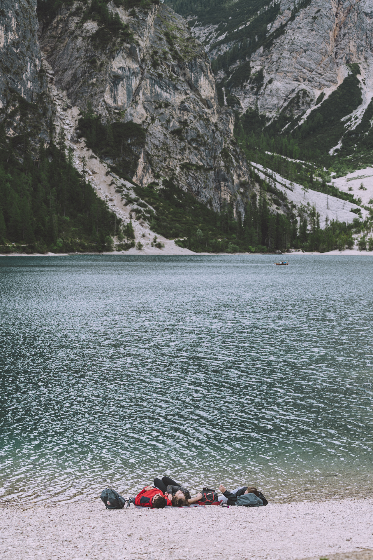 여러 호수 중 프라그세르 호수는 유독 다른 세계에 와있는 듯한 느낌이 드는 곳이었다. 사람들이 북적대는 주차장을 지나 비교적 좁은 길목을 거쳐 들어가면 빼곡한 산맥으로 둘러싸인 프라그세르 호수를 만나게 된다. 주차 장의 북적거리는 분위기는 온데간데없이 고요함 속에 바람이 불어오는 소리, 바람이 물에 부딪히는 소리가 들려 온다. 그래서인지 호숫가 주변에는 무거운 짐을 내려놓고, 가만히 누워 그 고요함을 즐기는 사람들이 많았다.