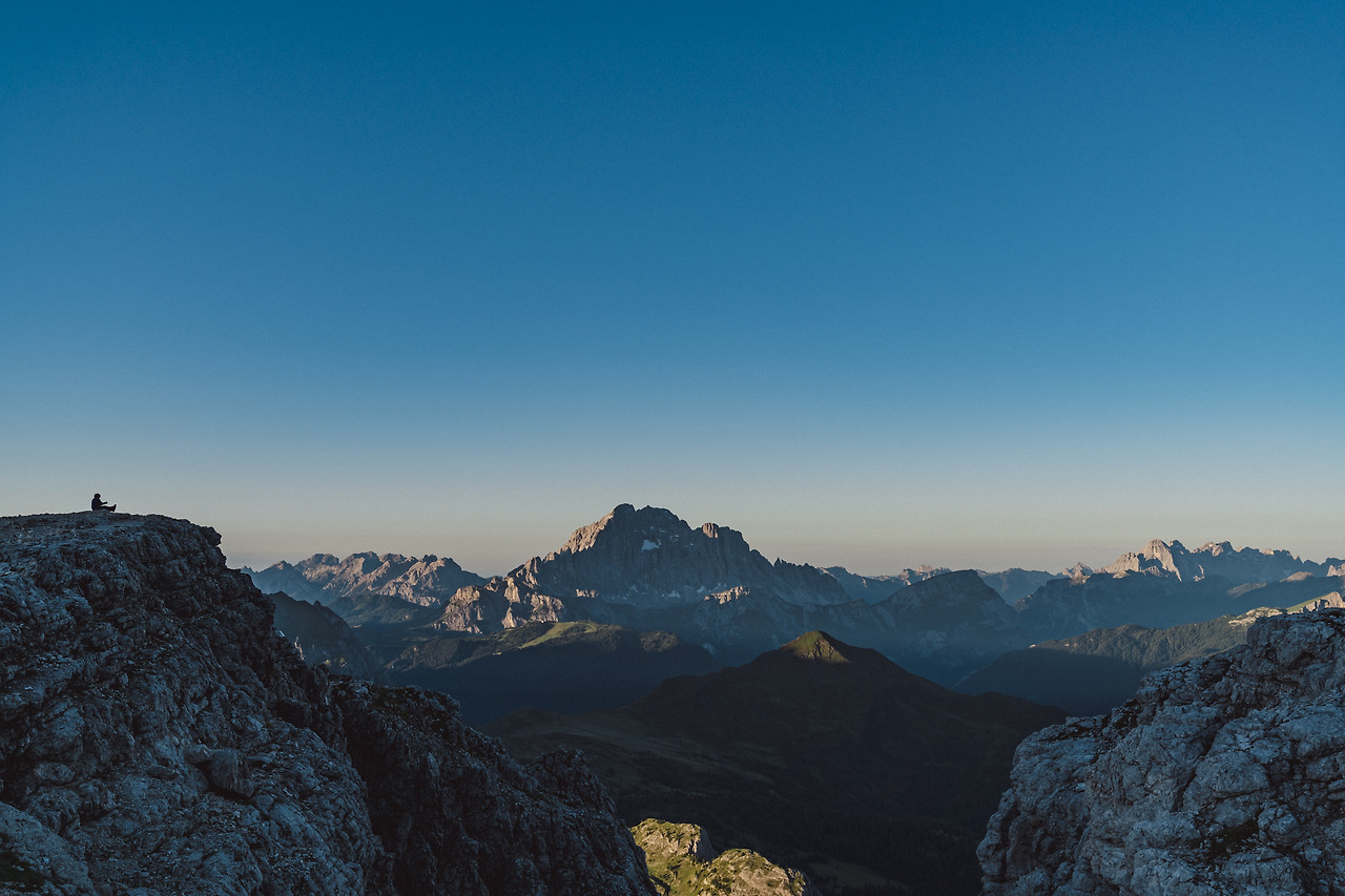 알람은 울리지 않았지만 눈이 떠졌다. 시계를 보니 5시 40분. 아내를 깨웠지만 일어나지 않았다. 외투와 카메라를 챙겨 홀로 밖으로 나갔다. 산장은 떠오르는 해를 등지는 위치에 있었기에 사진가들은 하나 둘 전망이 좋은 곳을 찾아 움직이고 있었다. 어제 오후 내내 주변을 가득 메우던 구름은 거짓말처럼 사라졌고, 탁 트인 돌로미티를 마주할 수 있었다. 사방 어딜 봐도 웅장한 산맥들이 시야를 가득 메우자, 도리어 어느 곳을 사진으로 담아야 할지 막막해졌다. 바라보는 것을 다 사진에 담아낼 수 없다면, 적어도 이 장면을 아내와 함께 바라보고 싶었다. 방으로 돌아가 아내를 깨우고, 함께 아침 산책을 나섰다.