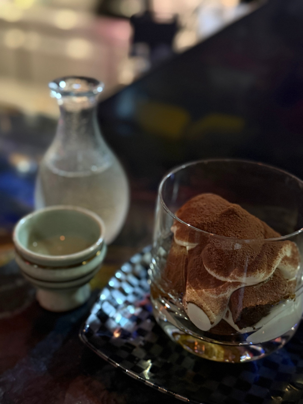 꽃내음이 살짝 나는 드라이한 사케는 티라미수의 달콤한 크림과 놀랍도록 잘 어울렸다.