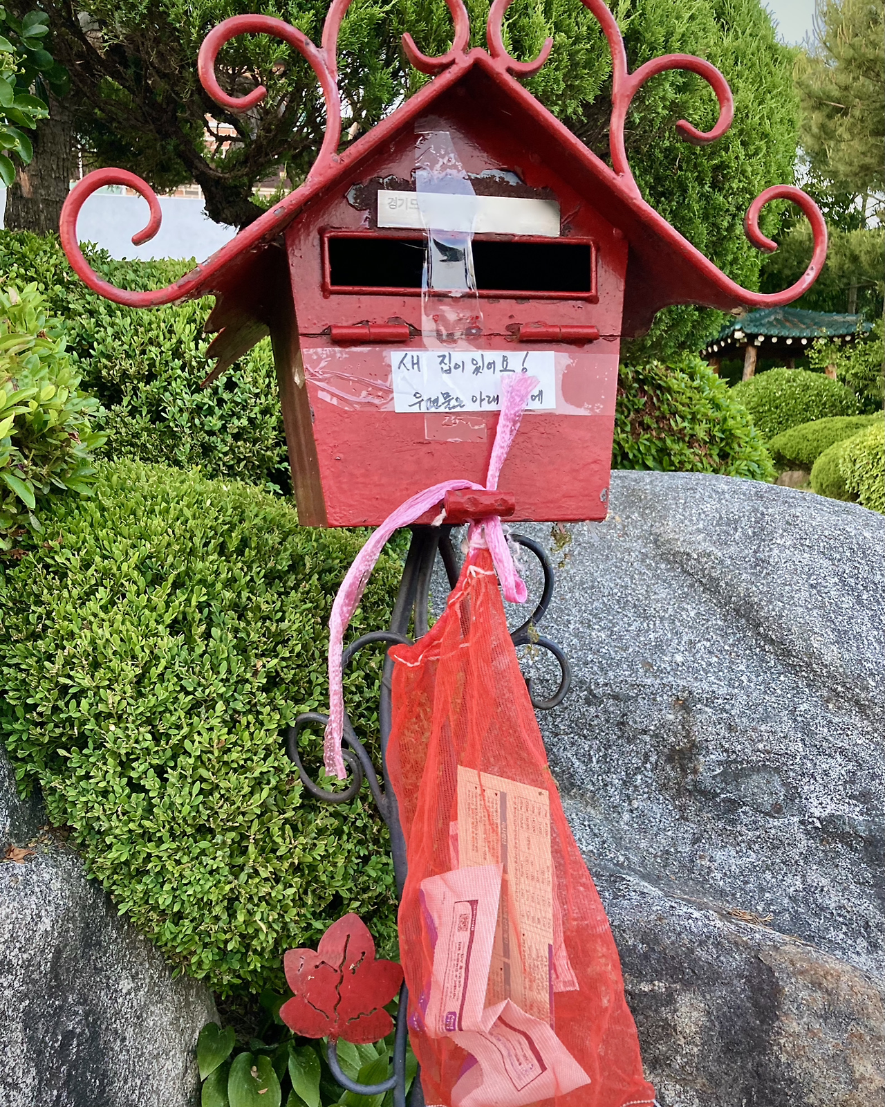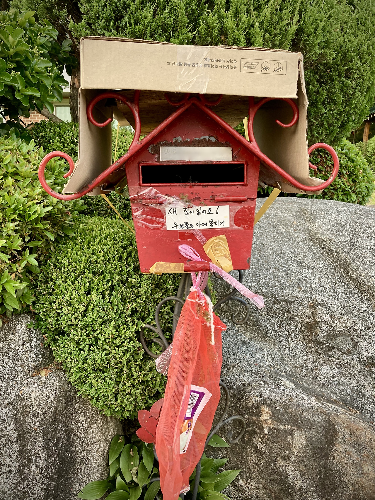 “새집이 있어요, 우편물은 아래 봉지에”,