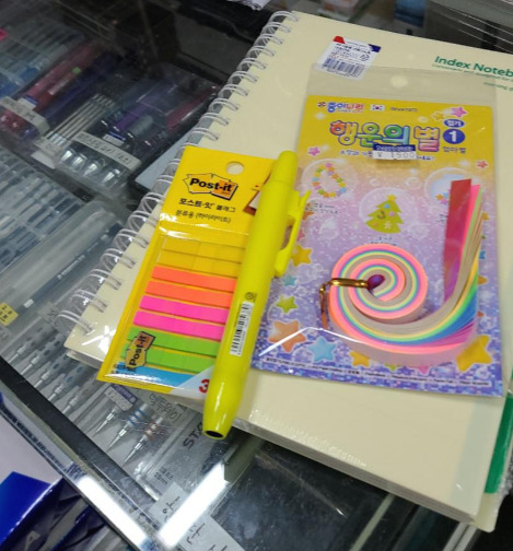 석유 난로 냄새와 정리안 되어 쌓인 문구들. 정겹다랄까? 내 공부에 도움이 줄 아이를 뽑아가며 이것저것 구경을 했다. 별 접는 종이도 구매하자! 나는 소심하게 주인에게 여쭤봤다.