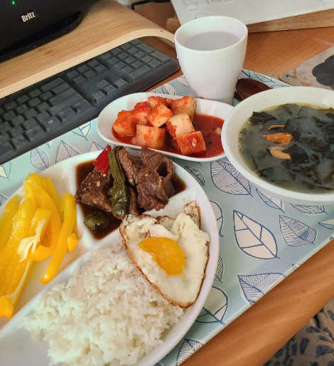 그리고 한 달 전 김장하여 엄마가 챙겨주신 깍두기. 그리고 두 달 전 엄마가 챙겨주신 미역국을 데웠다.