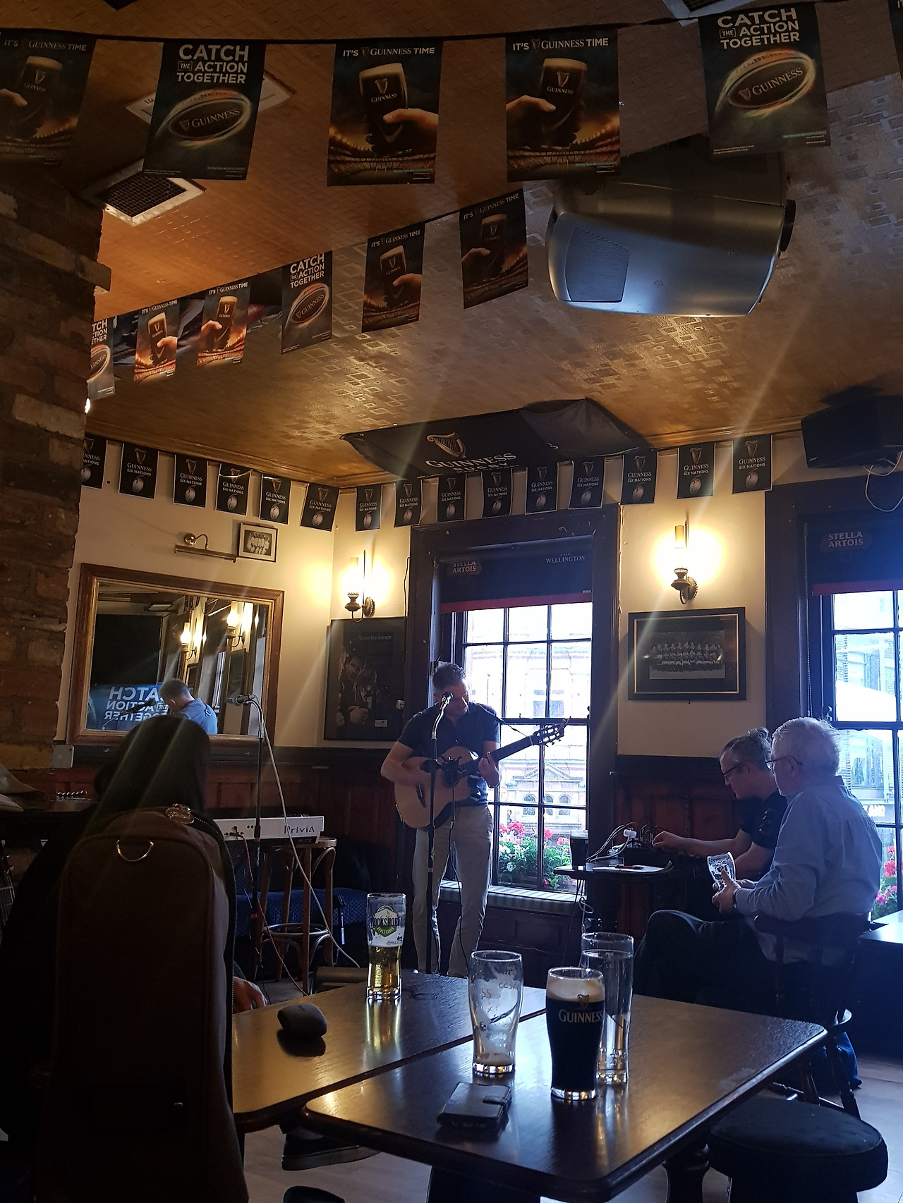 7시가 조금 넘는 시간 남편과 나는 설레는 마음과 약간의 긴장감을 가지고 약속 장소로 향했다. 우리 정서로 8시 시작이라면 20-30분 전에는 미리 가 있는 것이 예의라는 생각에 서둘러 도착했건만 펍의 1층엔 음악을 하기 위한 그 어떤 장소도 사람도 없었다. 종업원 한 명에게 오픈 마이크에 대해 물어보니 잘 모른다는 답변을 받았다. 장소를 잘못 찾은 건 아닌지 남편에게 재 확인을 시켜보았지만 약속 장소는 맞았다. 이게 무슨 일인가.. 괜히 왔나라는 마음이 들 찰나.. 기타를 맨 중년의 남성분이 카운터에서 기네스 맥주를 주문해서 2층으로 올라가는 것이 아닌가.. 우리는 다시 용기를 내어 또 다른 종업원에게 2층에서는 무엇을 하는 것인지 물어보았더니.. 원하면 올라가도 된다며 '오픈 마이크'라고 음악 연주를 한다고 했다. '으잉? 다른 종업원은 모른다고 했는데 ' 역시 어디에나 일 잘하는 놈과 일 못하는 놈은 다 있나 보다 웃어넘겨 보며 우리도 기네스를 한잔씩 들고 2층으로 향했다.