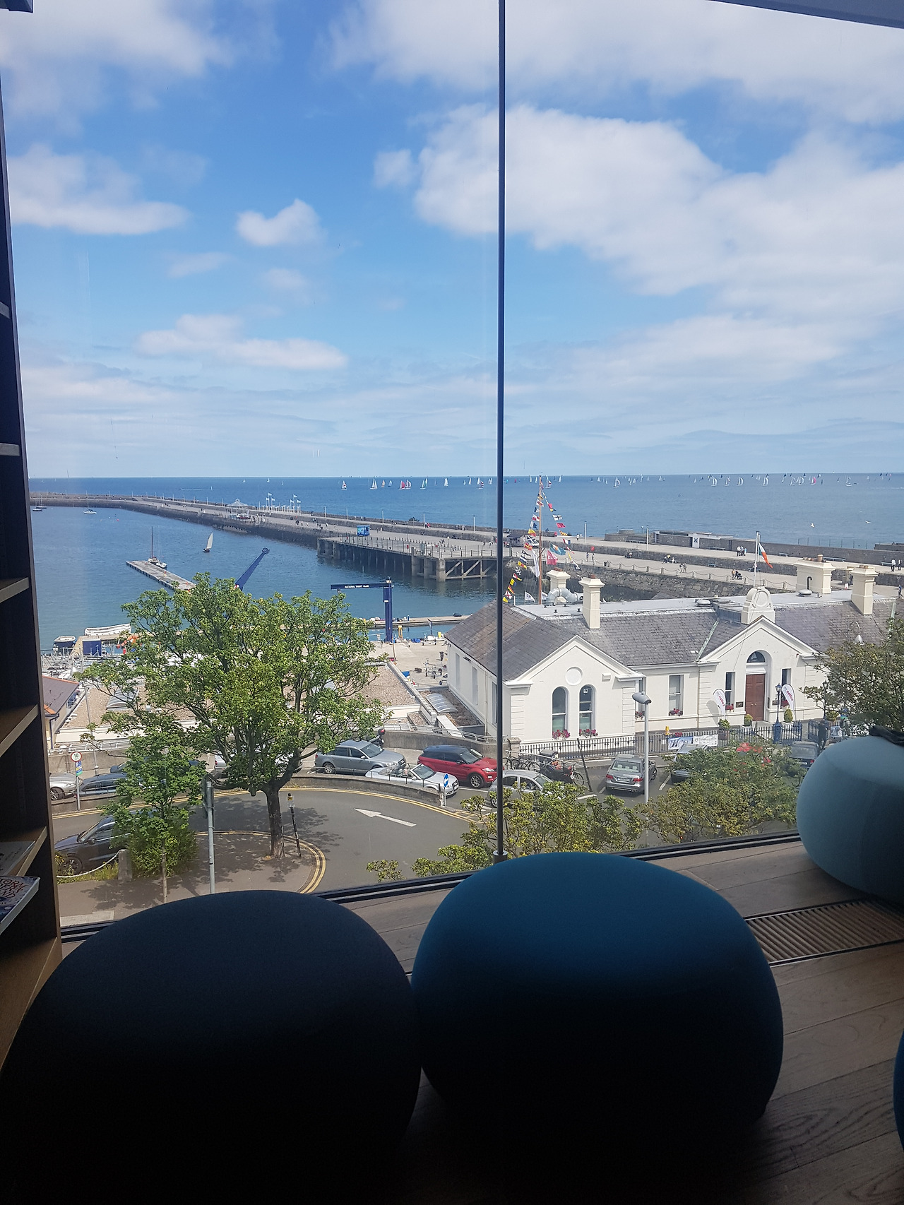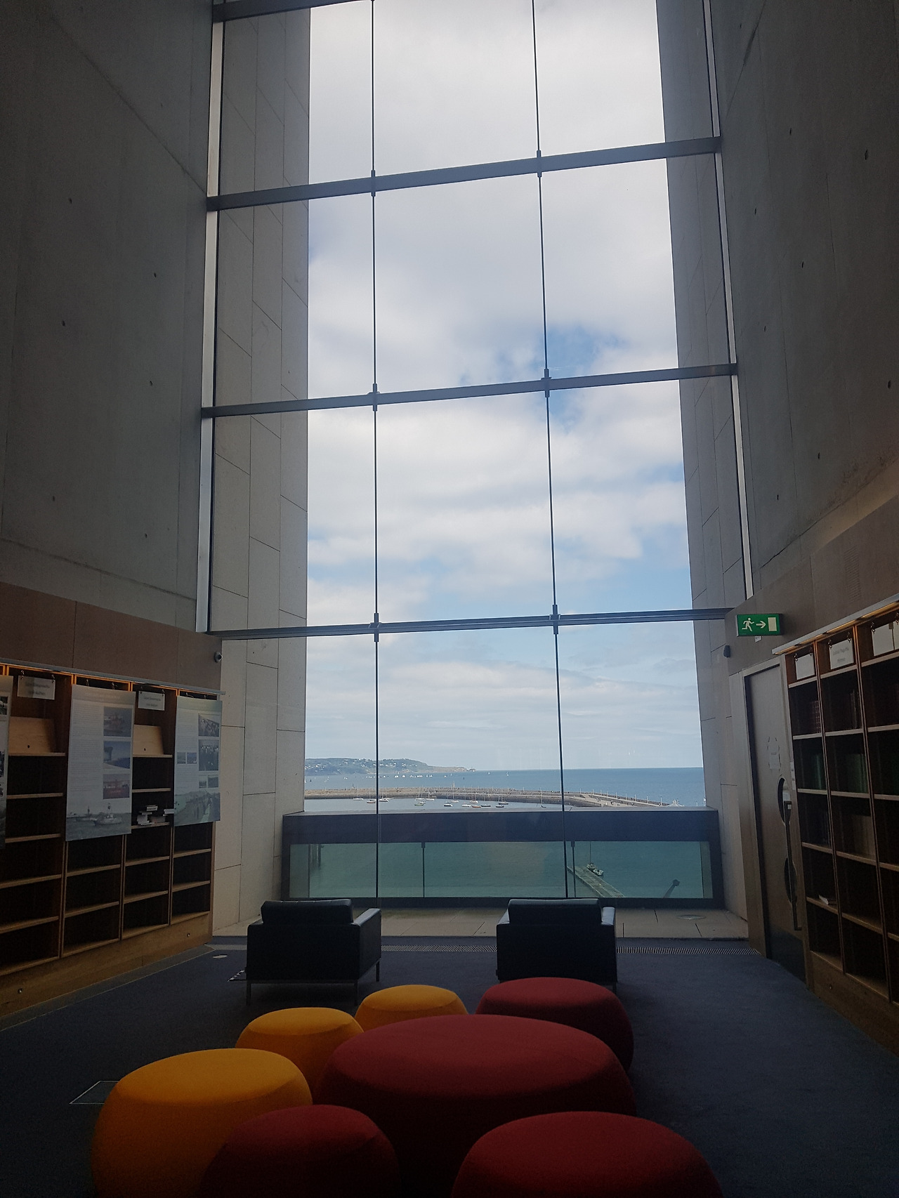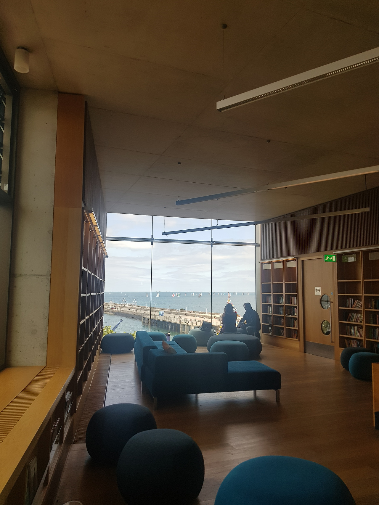 그러다 얼마 전 우연히 다녀온 던리어리라는 곳에서 기가 막힌 통유리 건물을 보게 되었다. 그저 조그만 항구가 있는 도시에 맛집 몇 개가 있고 다트를 타면 시내에서 20-30분이면 간다기에 바람이나 쐴 겸 다녀온 그곳에 참으로 멋들어진 도서관이 하나 있었다. 세상 정적이며 현대식 건물이라고는 몇 없는 아일랜드에 그것도 시티에서 20-30분이나 떨어진 그곳에 웅장하게 지어진 도서관의 모습은 외관부터 장관이었다. 흡사 우리나라의 신식 빌딩들과 견주어도 손색이 없을 만큼의 멋진 모습이었다.