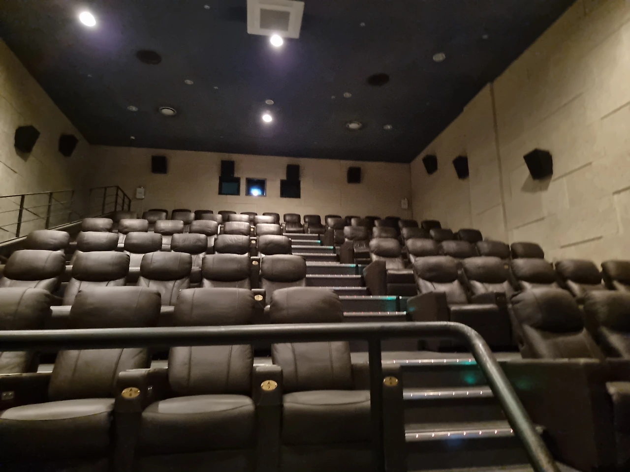 설레는 마음으로 영화관을 들어와서, 입구 쪽 복도를 걸어 뒤로 돌아 자리로 오르려는데 아무도 없어서 사진을 한 번 찍었다. 조금 있다가 착석하고 앉아있으니 한 10명 정도의 사람들이 군데군데 앉기 시작했다.