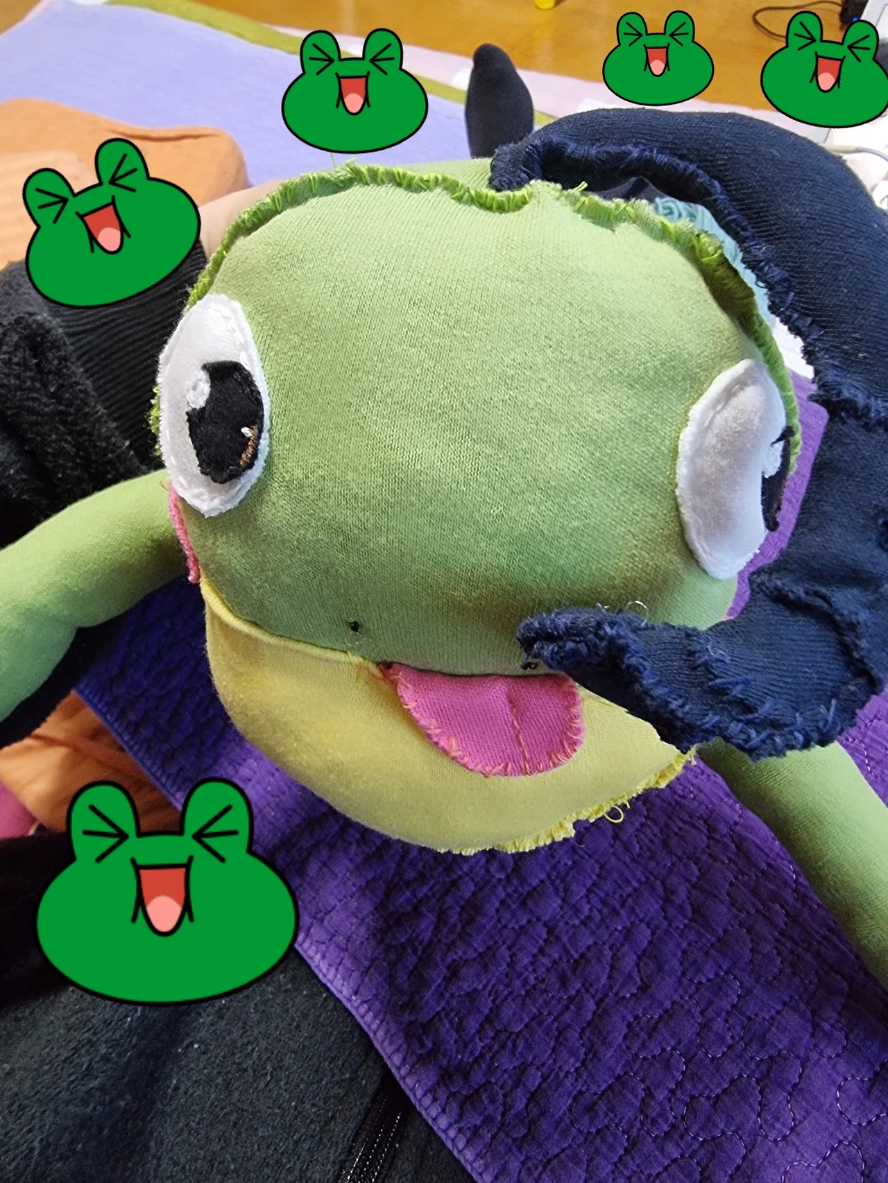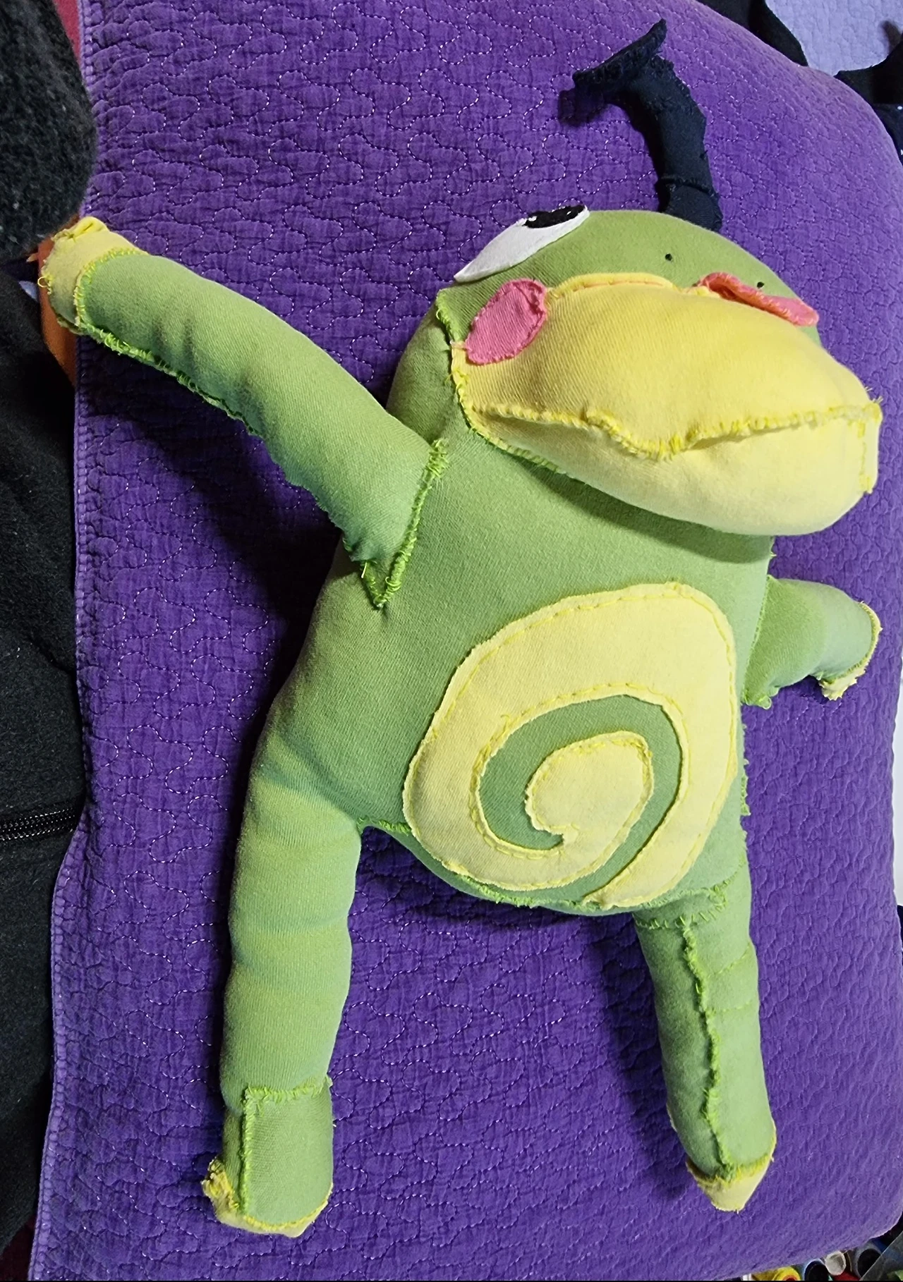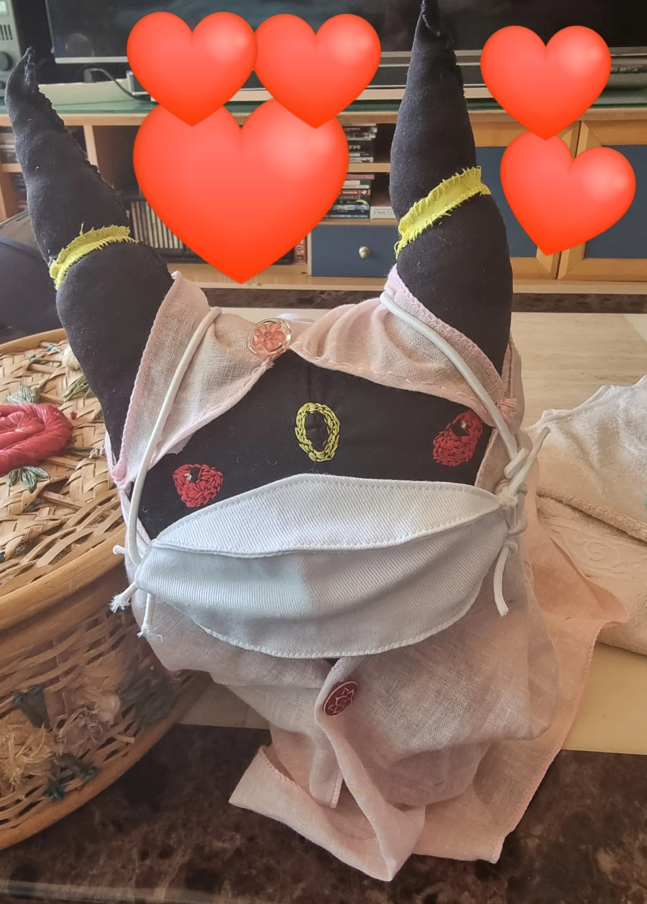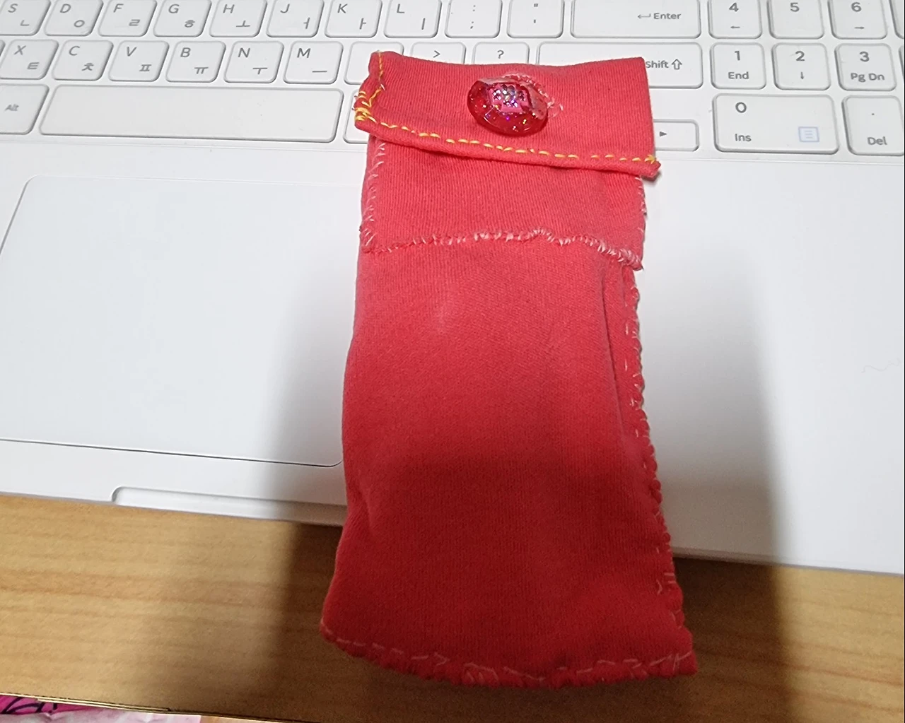 왼쪽은 기성품 파우치 안주머니가 너무 잘 흘러내려서 덧댄 주머니 덮개, 그리고 포켓몬 왕구리 인형.