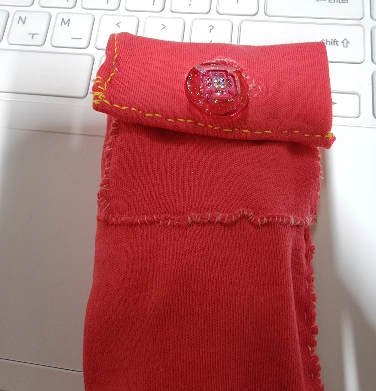 가방에 단 마크 (줄여서, '초.미.', 자세히 보면 오른쪽 밑에 학교모양을 넣음-초등학생 때 作), 가운데&오른쪽은 남포동 국제시장에서 산 단추를 써서 만들어 본, 차키 주머니