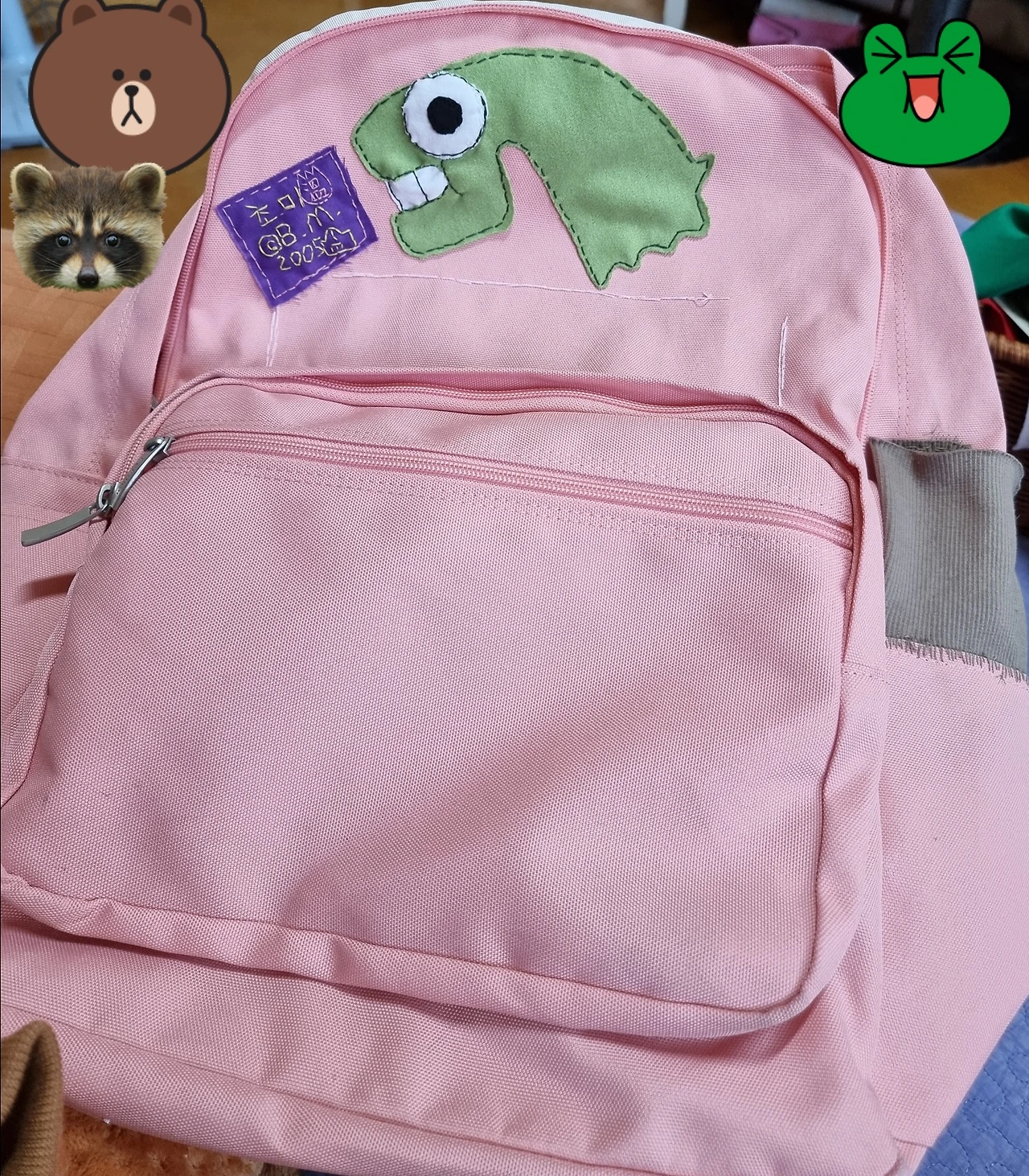 기성품 가방 수선.(캐릭터는 '초식미뇽'(2000년대 초등학생 때 만들어서 얼마전에 저작권등록한ㅋㅋ 캐릭터))