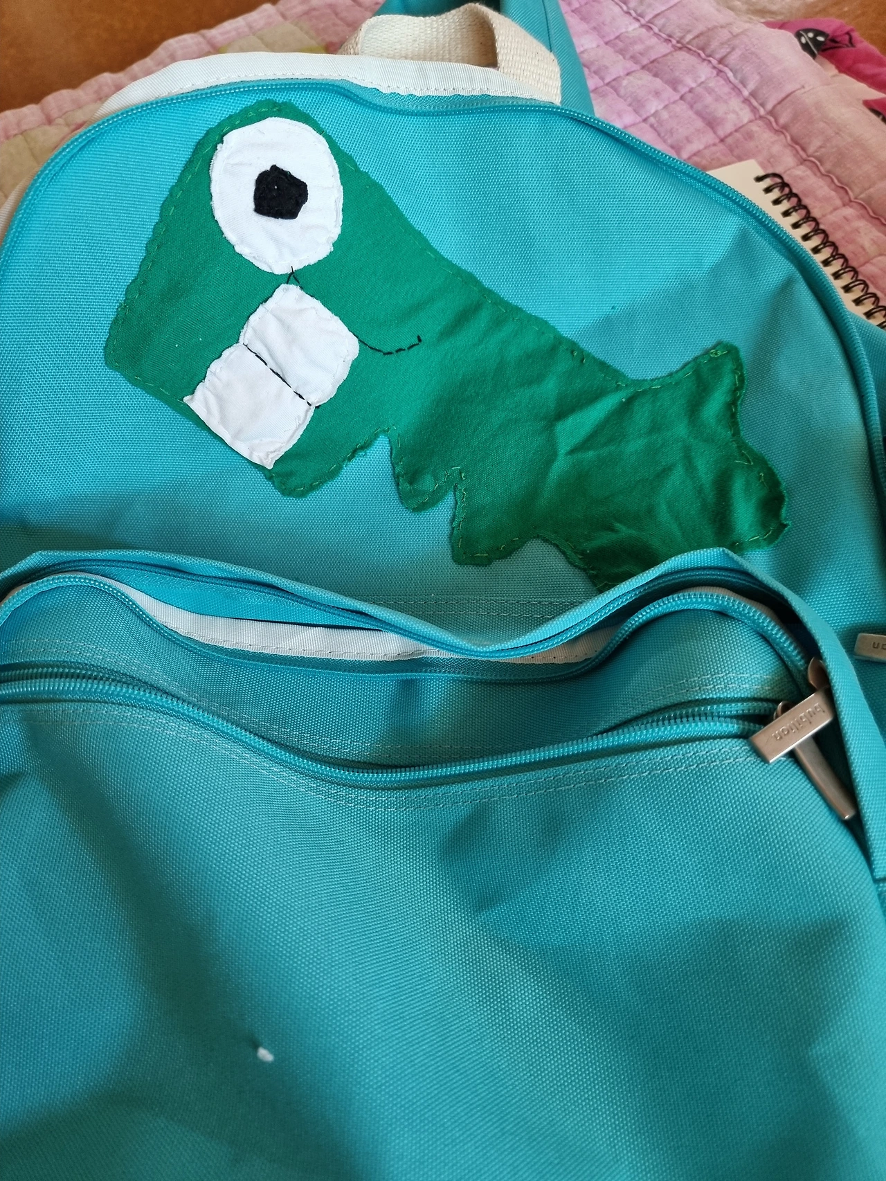 여하튼, 나의 캐릭터의 가장 큰 특징은 큰 눈과 하얀 이빨(공룡이다)인데 한 땀 한 땀 바느질을, 특히 기성품 가방 같은데 해 넣는 게 수월하지만은 않고 손가락 끝에 힘이 많이 들어가서 이런 작업에는 골무를 이용하기도 한다.