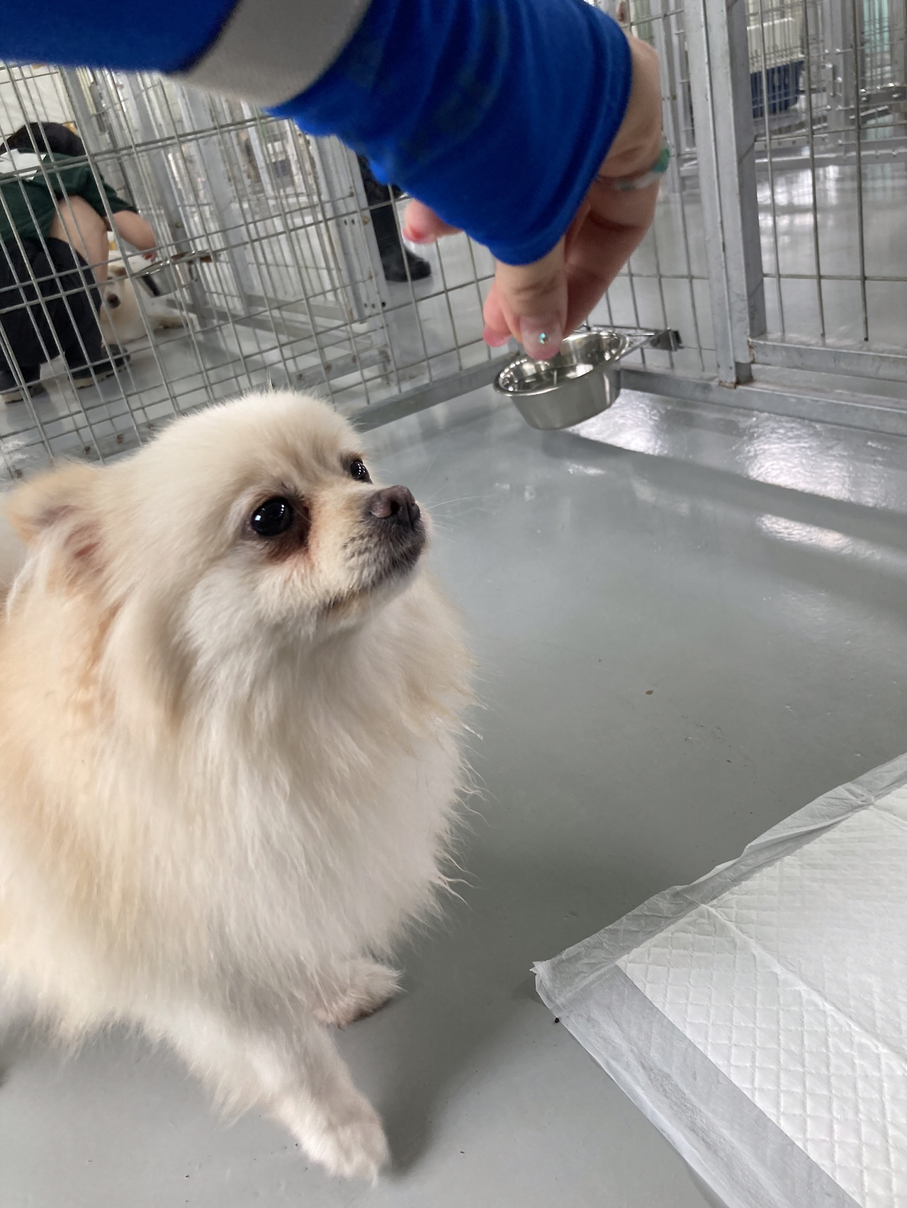강아지들과 시간을 보내며 각 강아지들이 어쩌다 유기견 보호소엘 오게 되었는지 이야기를 들었다. 원래는 암에 걸려 시한부 판정까지 받았지만 보호소에서 잘 적응한 덕에 암이 전이되지 않고 현재까지 잘 지내고 있는 보호견 이야기를 듣곤 더 시간을 보내주려 노력했다. 조그만 포메라니안 보호견은 번식장에서 구조되었는데, 안타깝게도 성병에 걸리게 되었다. 사람에게는 잘 옮지도 않을뿐더러 옮아도 감기 수준으로 앓고 지나간다고는 하지만 도살을 시켜야 하는 코드의 성병이기 때문에 도살 위험에 처해있었다. 위액트 측에서는 책임지고 관리할 터이니 보호소로 데려오겠다고 주장했다고 한다.