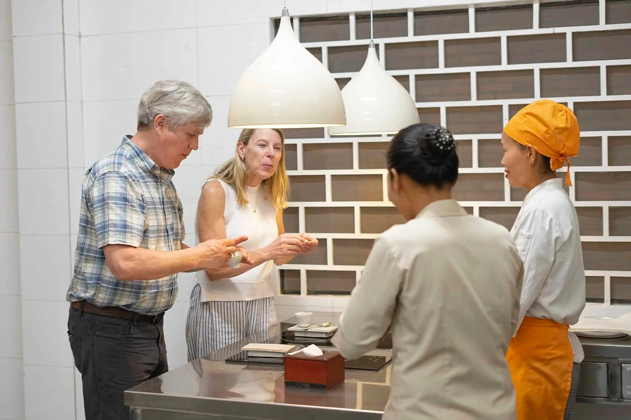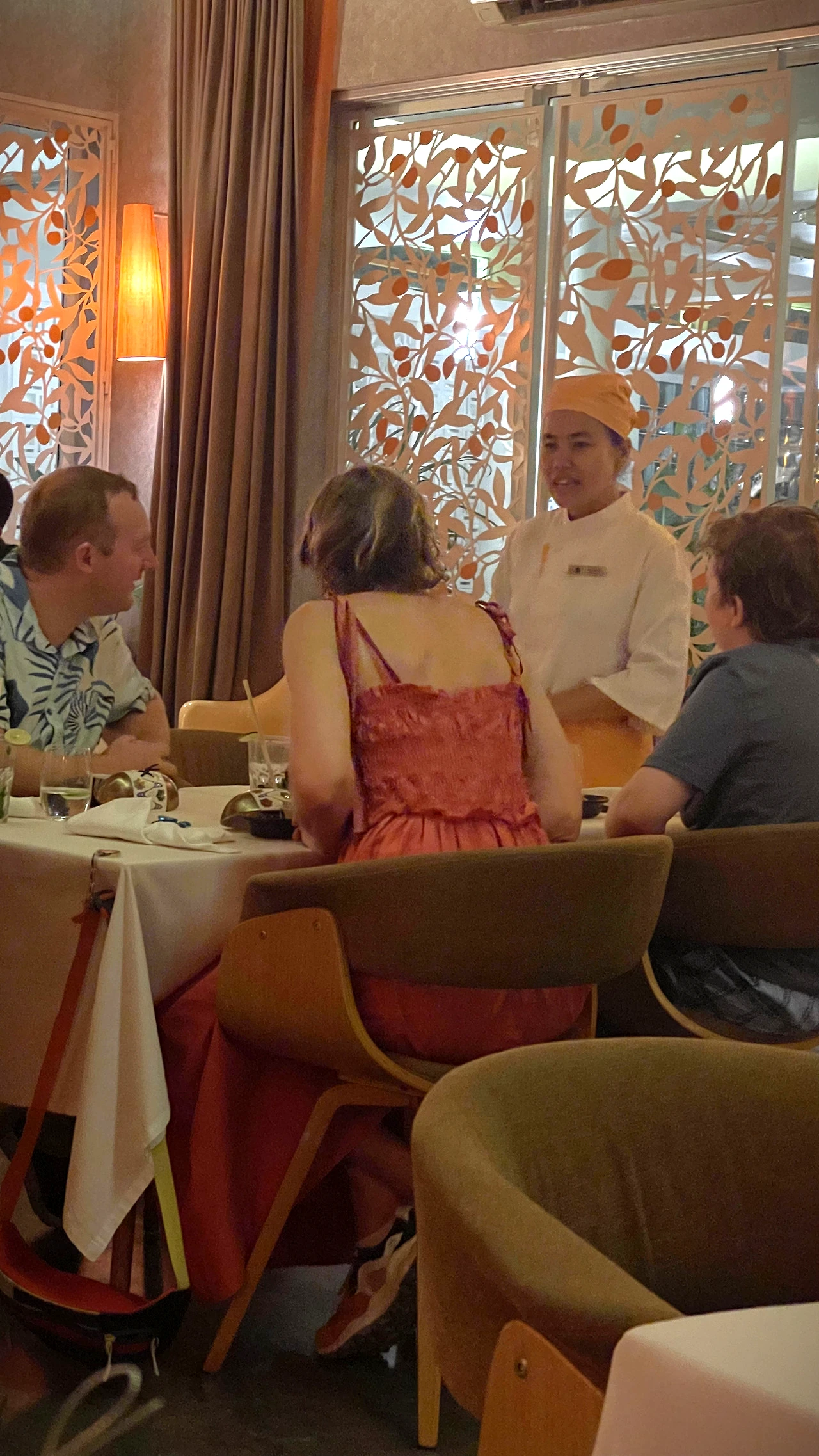 식사를 마친 뒤, 직접 테이블을 돌며 손님들과의 소통을 이어가던 캄보디아를 대표하는 크메르 음식의 권위자이자 이곳 Embassy 레스토랑의 마스터 셰프인 Kimsan Pol의 모습을 직접 볼 수 있었는데, 불편할 수도 있어 나의 테이블로 오셨을 때 직접 사진은 찍지 못하고 멀리 다른 테이블에 계셨을 때의 찰나를 사진으로 담아 보았다.