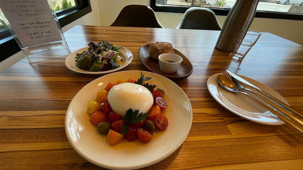 메뉴를 살펴보니 이곳은 1일 한정으로 스테이크를 메인 음식으로 판매하고 있는 듯했지만, 가벼운 점심을 원했던 나는 부리타 샐러드랑 직접 재배한 감자로 만든 트러플 크림 뇨끼를 주문했다.
