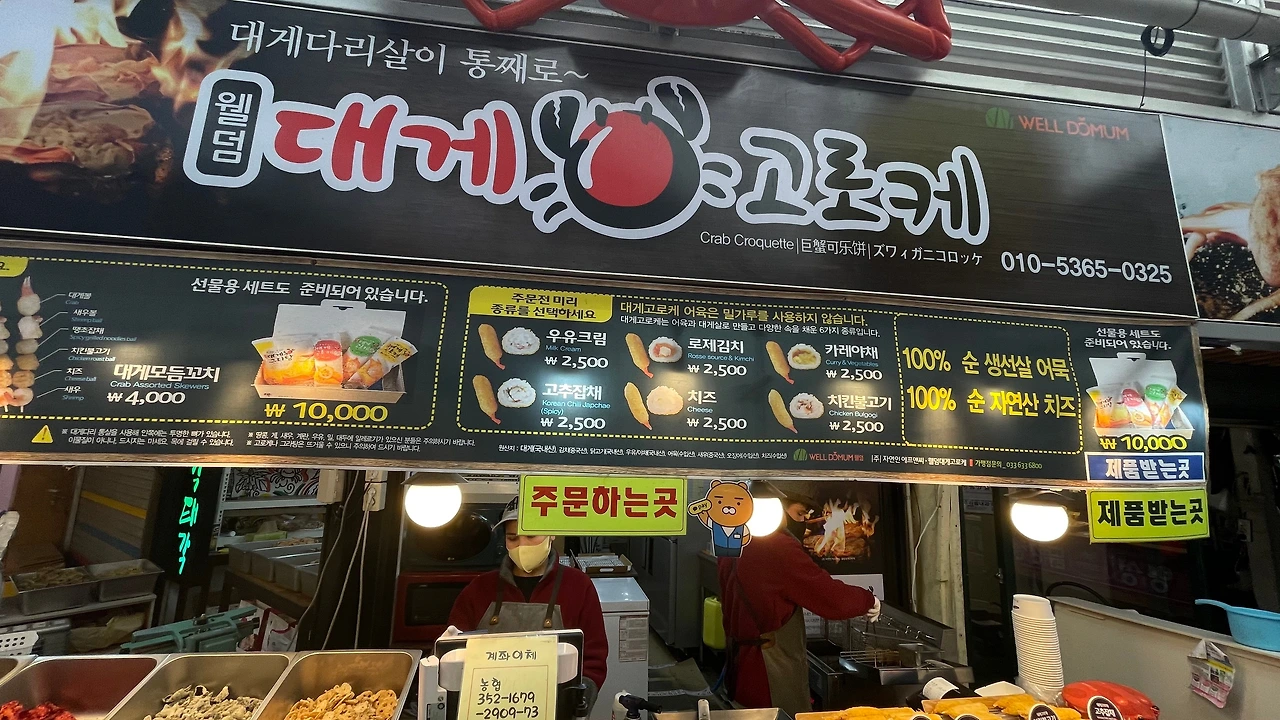 너무나도 만족스러웠던 행복한 식사 후, 친구와 잠시 중앙시장을 거닐었는데, 디저트 겸 대게 고로케들을 종류별로 주문했다. 이곳 중앙시장에는 여러 유명한 맛집들이 포진해 있으니, 하나하나 찾아가 맛보는 것도 꽤 즐거운 재미를 제공할 듯하다.