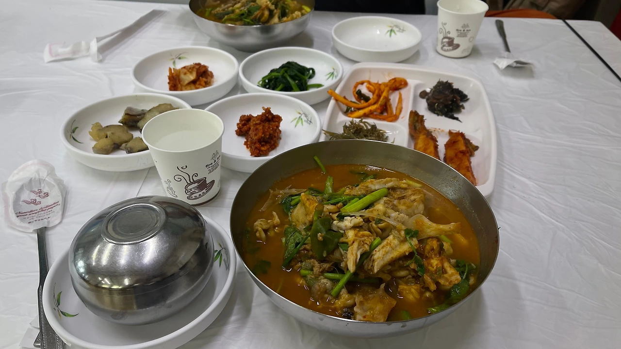 조금만 늦어도 줄 서서 기다려야 한다는 여기 해성 횟집에는 꽤 이른 점심시간이었는데도 사람들로 북적댔다. 운 좋게 거의 마지막 자리를 차지한 우리는 전설의 삼숙이탕 2개를 주문했다.