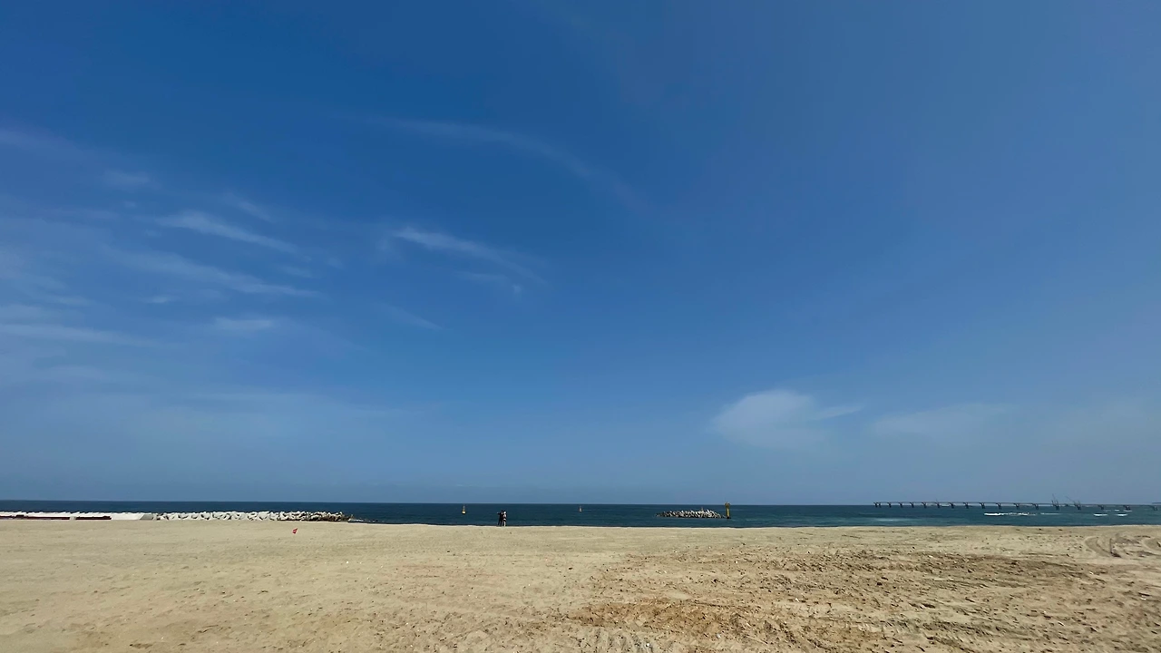 친구도 이렇게 날 보내긴 서운했던지 순수히 따라나섰다. 우린 꽤 바람이 매섭게 불었던 남항진 해변가로 다가가 눈이 아플 정도로 파랬던 하늘과 바다를 배경으로 사진을 찍었다.