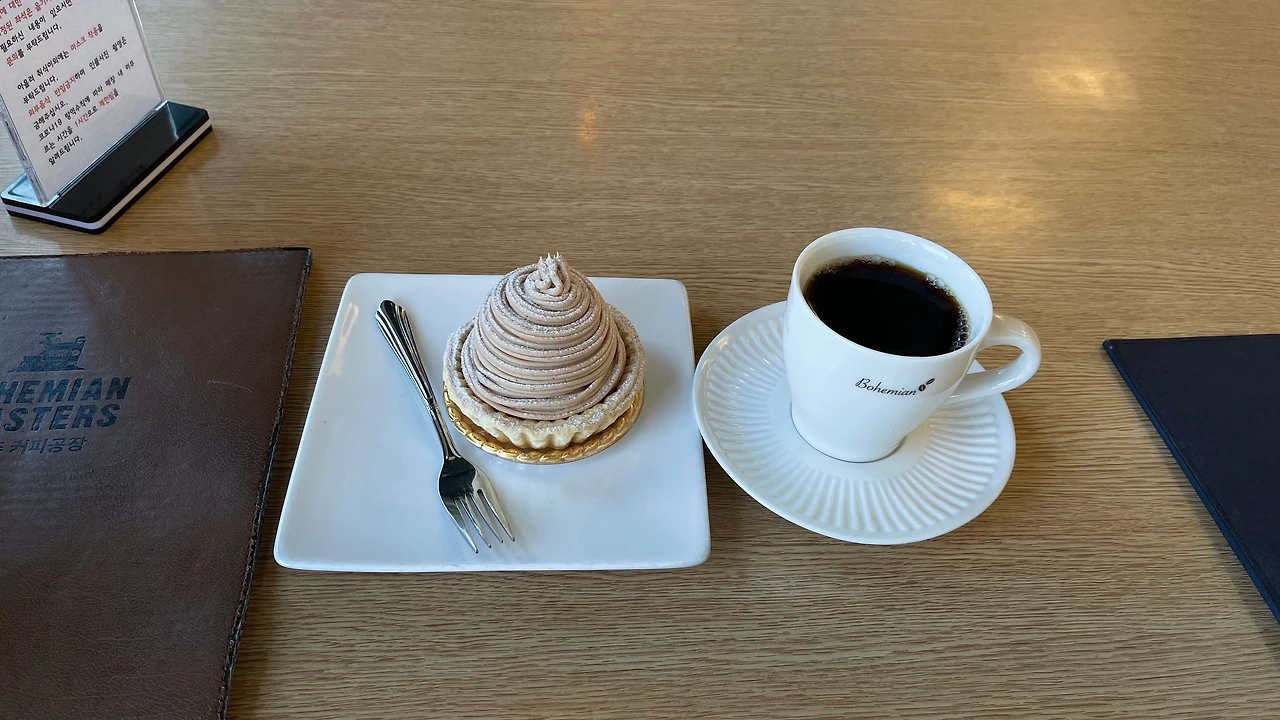 나는 보헤미안 블렌드 한잔과 실패가 없는 몽블랑을 시키고 멀리 카페 앞 바다를 바라보고 있었다. 잠시 후 오랜만에 맛보는 박이추 커피는 적당한 산미가 여전히 매력적이어서 예전 추억을 아른하게 생각나게도 했고, 오전부터 허전했던 맘을 편안하게 달래주기도 했다.