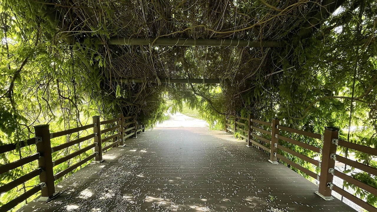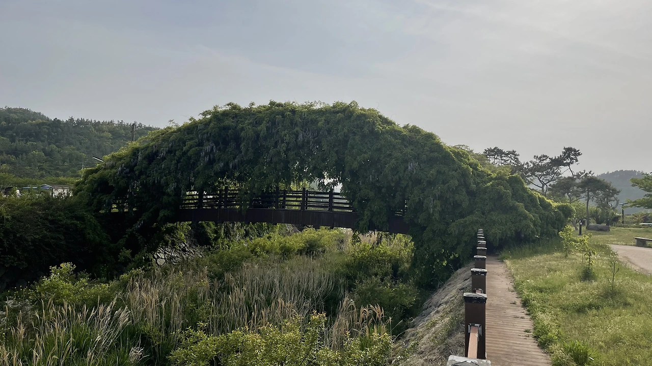 지친 몸이 좀 치유되었을까... 아쉬운 맘을 뒤로하고 카페를 나와 차로 돌아가려는 찰나, 멀리 보이는 나무에 뒤덮인, 괴물이라도 나올 법한 이상한(?) 다리 하나가 자꾸만 눈에 밟혔다.