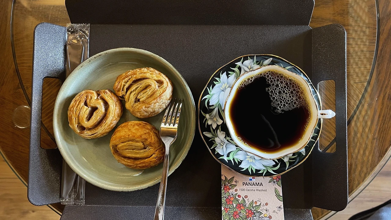이곳 카페에서는 다양한 고퀄리티 핸드드립 커피들을 제공하고 있는데, 난 가장 좋아하는 커피 중에 하나인 '파나마 게이샤'와 약간은 허기진 배를 달래기 위한 간식으로 데니쉬 패스트리를 주문했다.