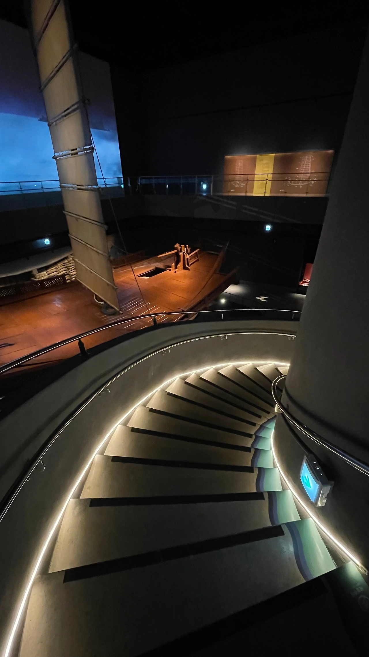 2층 관람을 마치고 원형의 계단을 통해 1층으로 내려가면 실제 난파선을 구현한 듯한 큰 배가 우릴 반겨주는 제3전시실을 만나게 되는데, 이 배는 태안 해양유물전시관의 랜드마크인 마도 1호선 재현선으로 우리 전통배의 규모와 특징을 한눈에 살펴볼 수 있다.