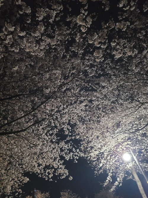 컨디션이 좋아진 아이의 손을 잡고 벚꽃 축제가 파할 때쯤, 어슴푸레한 저녁에 꽃구경을 왔다.