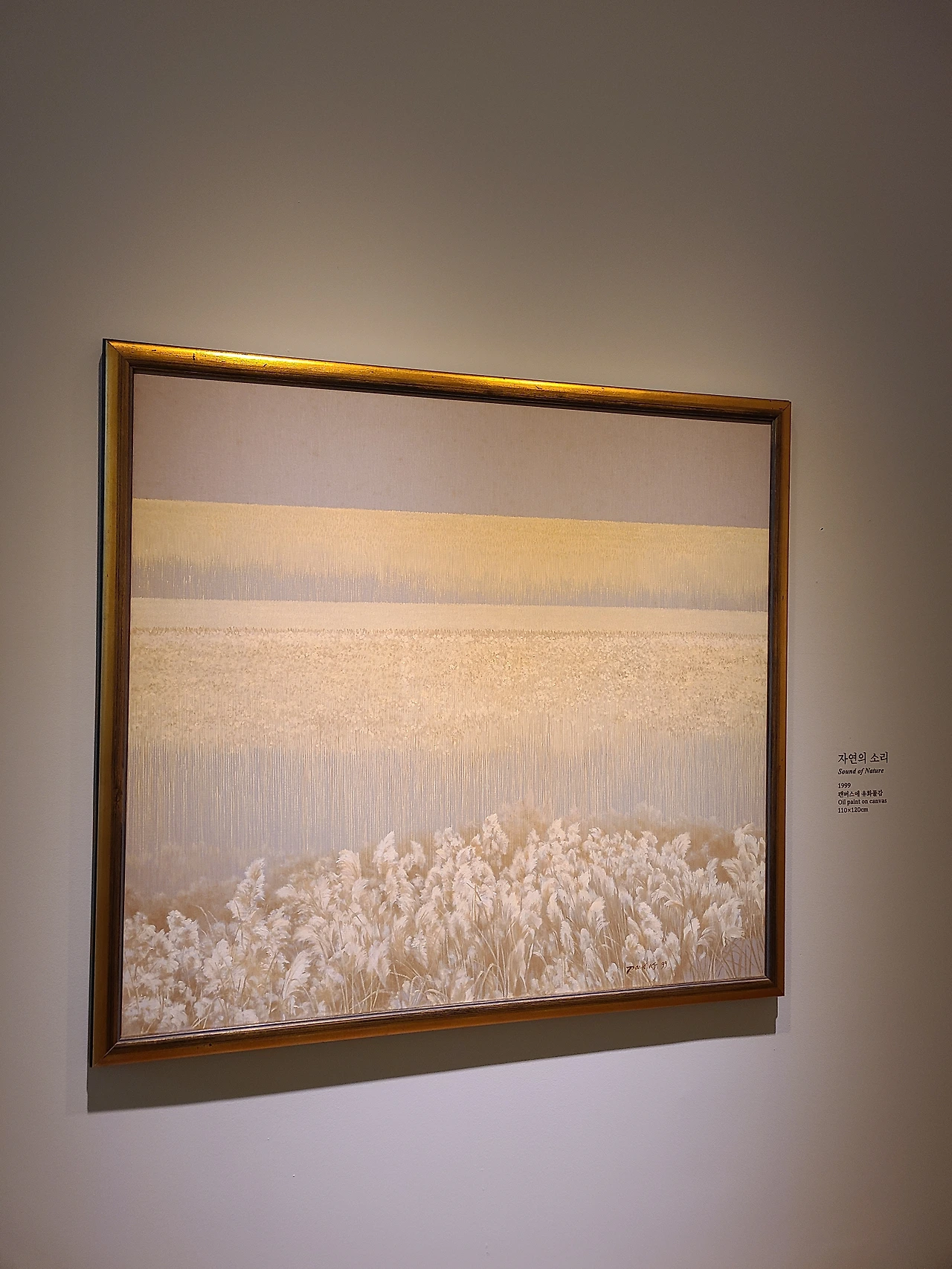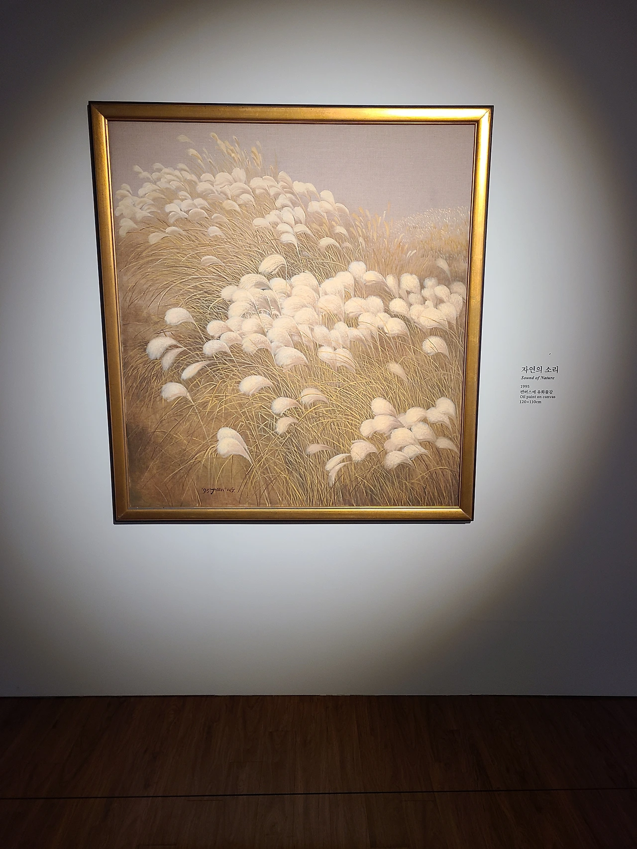 박광진 화백이 그려낸 한라산과 억새 군락지는 가을의 스산함보다는 작열하던 여름을 미련 없이 떠나보낸 성숙함에 가까웠다. 원 없이 푸르렀다가 요란스레 열매를 맺은 뒤로 맞이할 법한 고즈넉함이 사각 액자 밖을 넘어서 은은하게 배어났다. 억새끼리 바람에 몸을 부대끼며 빚어내는 소리를 시각화한 그림도 신선했다. 같은 장면을 사실주의 풍경화와 기하하적 추상화로 기법을 달리해 표현한 작품들을 비교해 보는 재미가 있었다.