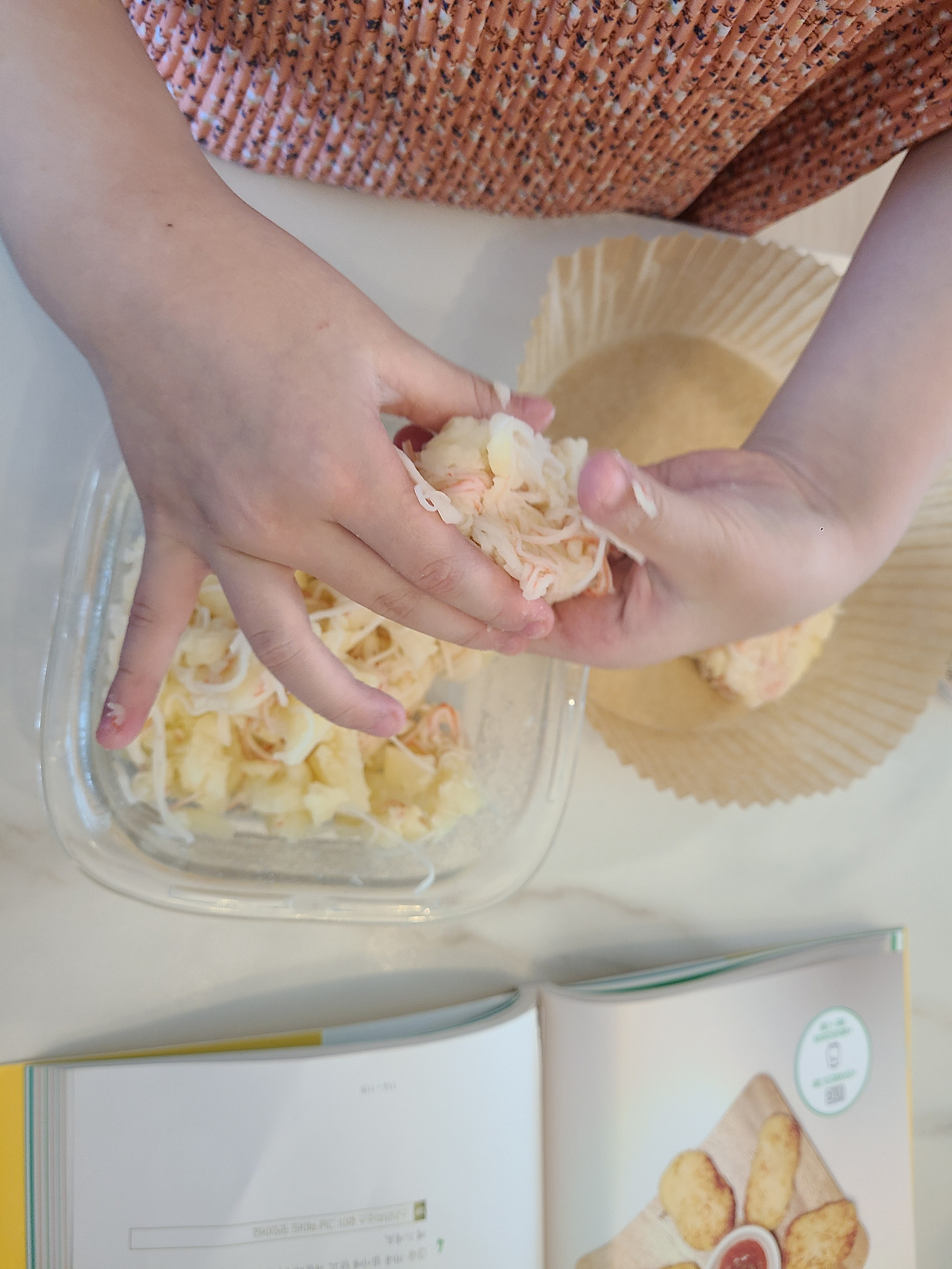 아이는 꿈이 파티시에와 요리사일 정도로 요리를 좋아한다. 어린이집과 문화센터 키즈 쿠킹&베이킹 수업으로 숙련된 조기교육의 힘이랄까. NO 가스레인지 레시피라 불은 안 써도 되니 요리의 주도권은 아이에게 넘긴다.