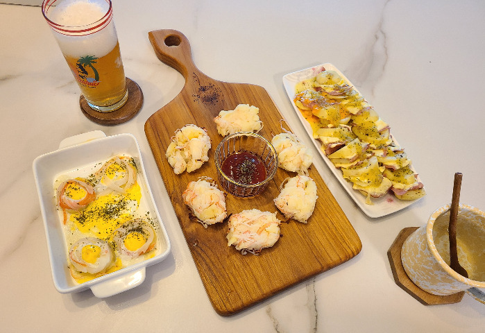 저탄수화물 다이어트 레시피지만 플레이팅을 마치고 보니 딱 맥주 각이다. 장 볼 때 병맥주 하나 장바구니 안에 스윽 밀어 넣은 나 자신 칭찬해. ‘갈릭치즈감자구이’ 한 입에 시원한 맥주 한 모금 쭉 들이키니 흑백요리사의 심사위원처럼 안대를 끼진 않아도 절로 눈을 감고 맛을 음미하게 되는 것이다. 예상이 가는 뻔한 맛일지라도 고사리 손 셰프의 지휘 하에 완성된 요리는 마지막 셰프님의 말이 진정한 '킥'이었다.