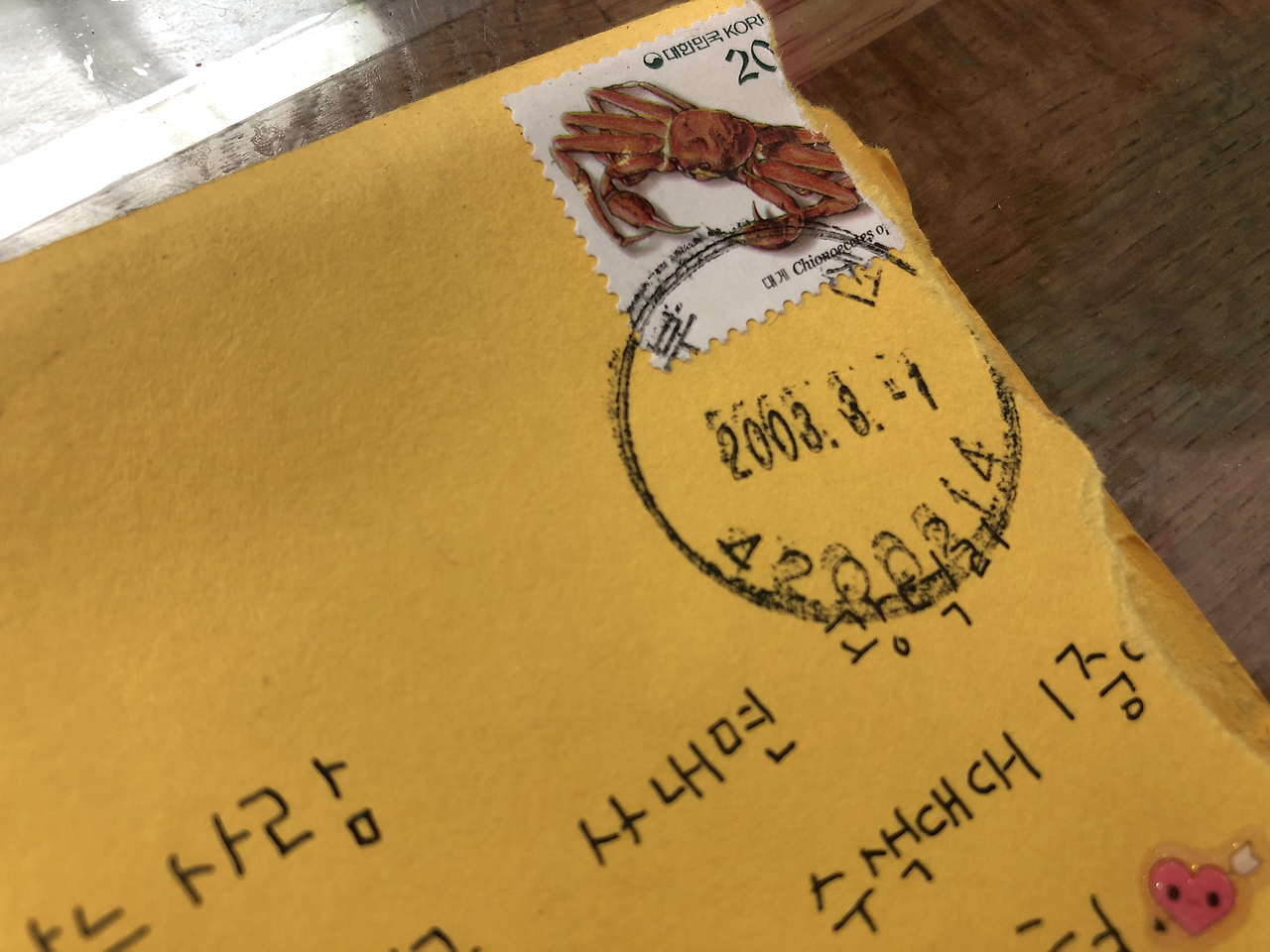 우편봉투 위의 2003년이라고 찍힌 직인 도장과 우표가 눈에 들어왔다.